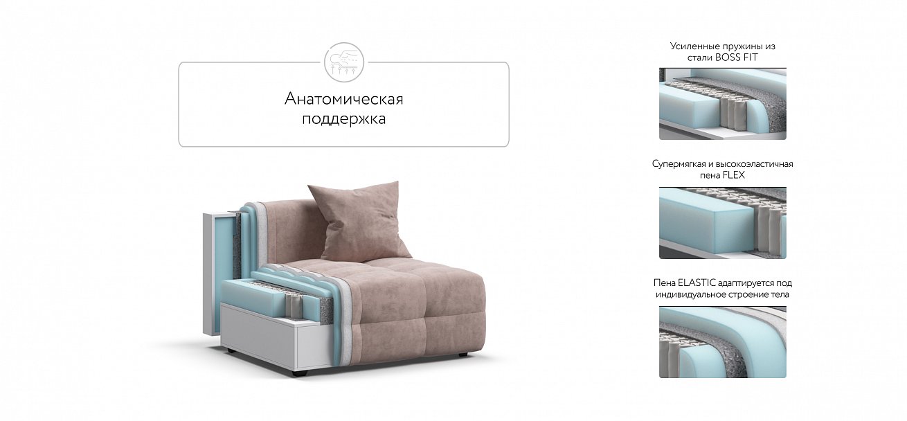 Эластичная пена BOSS Flex и независимый пружинный блок BOSS FIT обеспечивают долговечный комфорт, подстраиваясь под ваше тело.