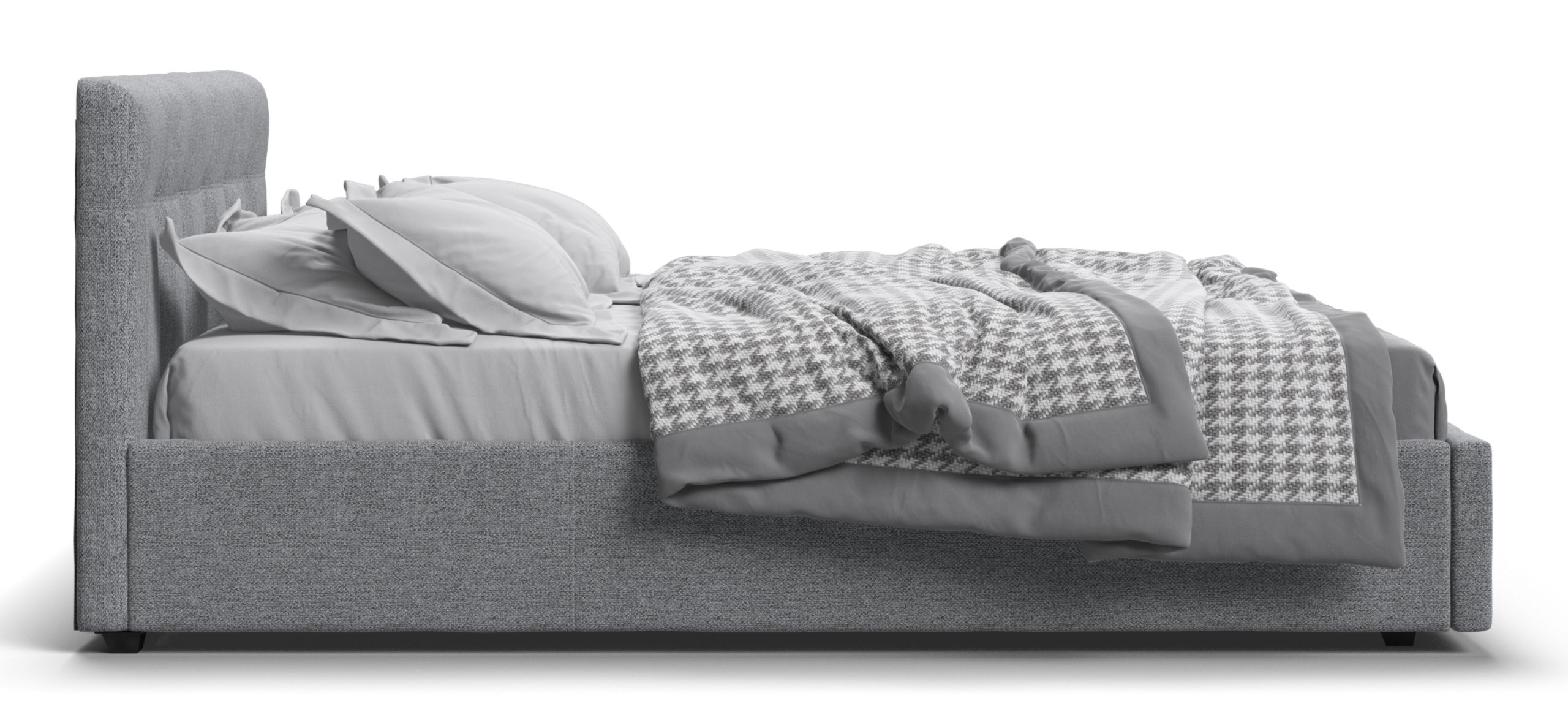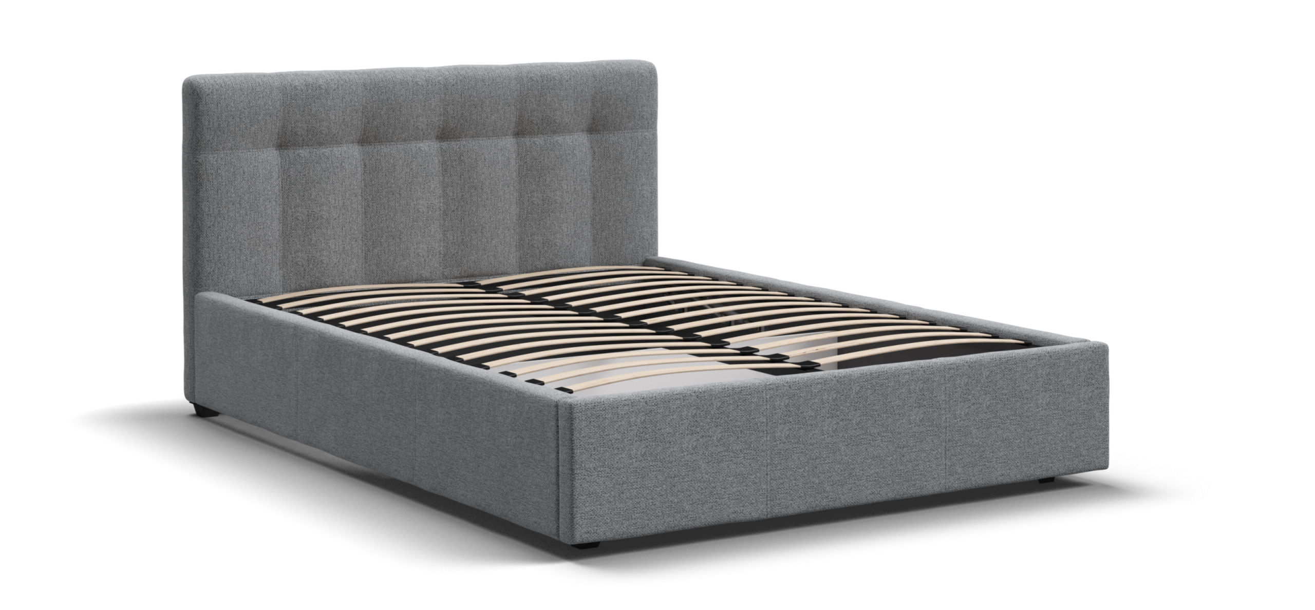 Кровать расположена на уровне пола, что предотвращает накопление пыли под основанием, облегчая уборку и поддерживая гигиену в спальне.