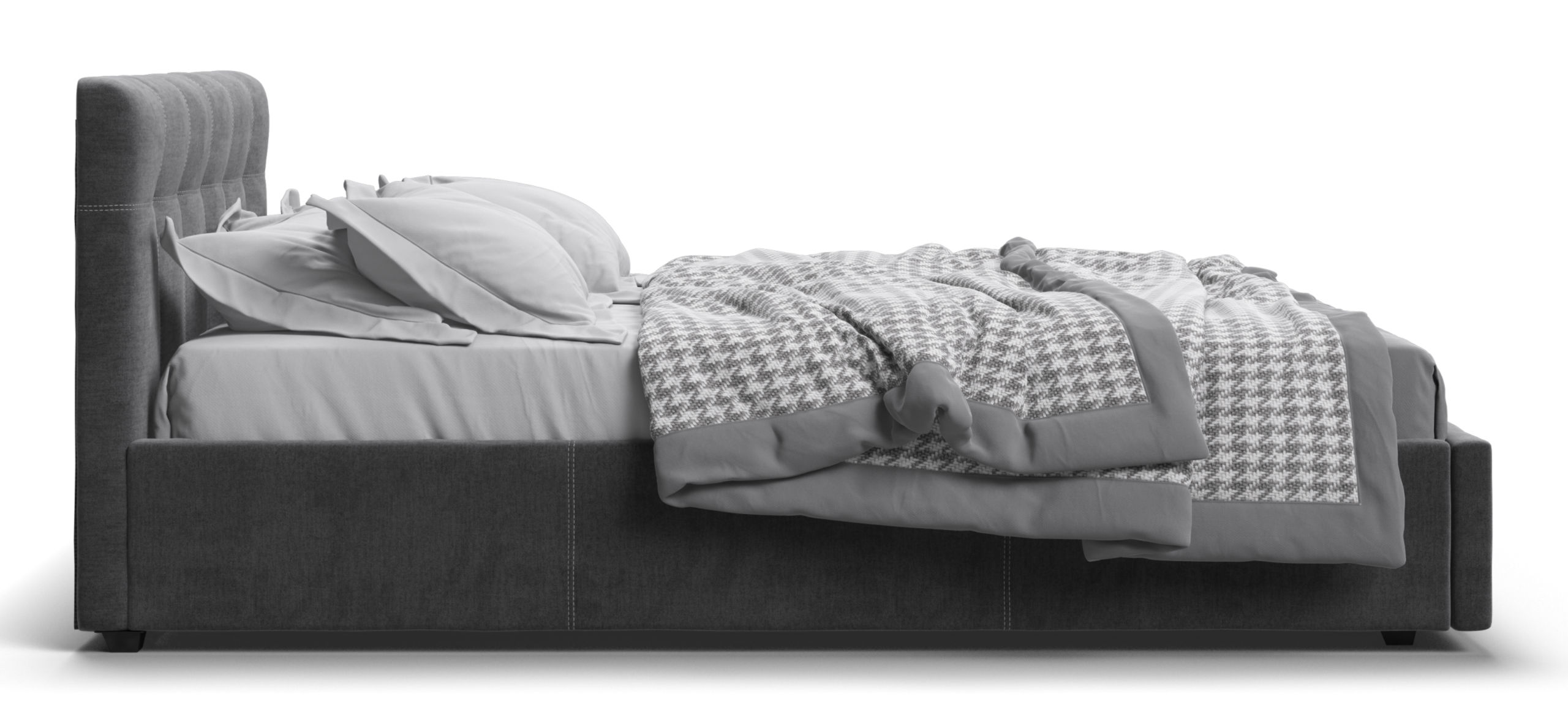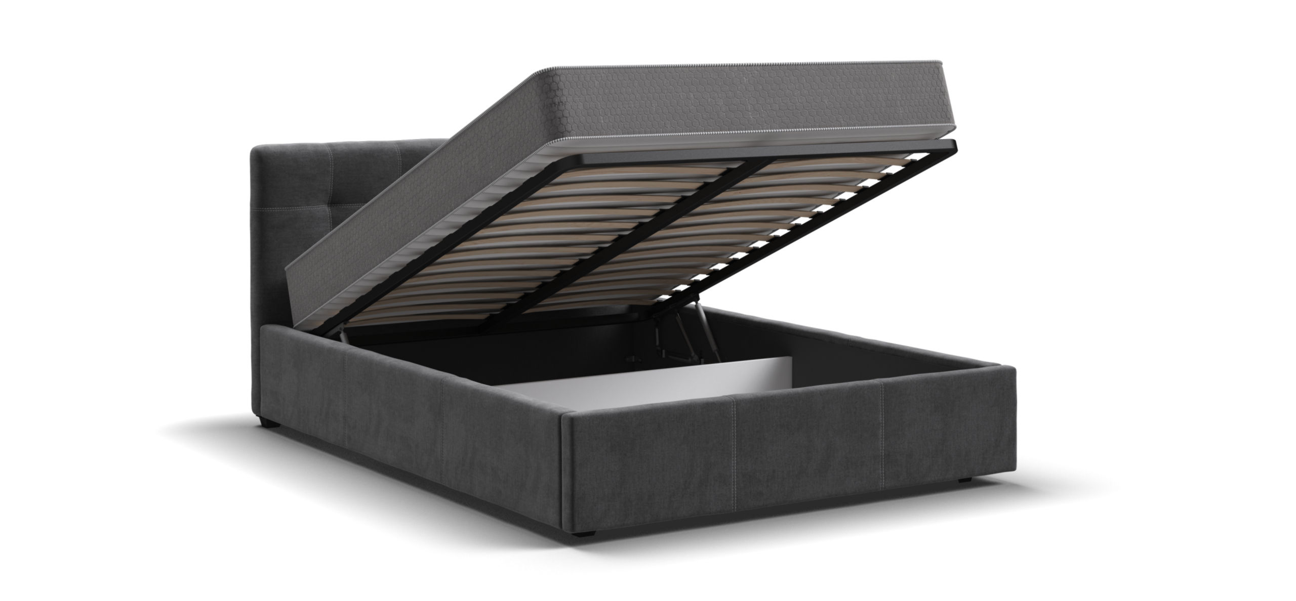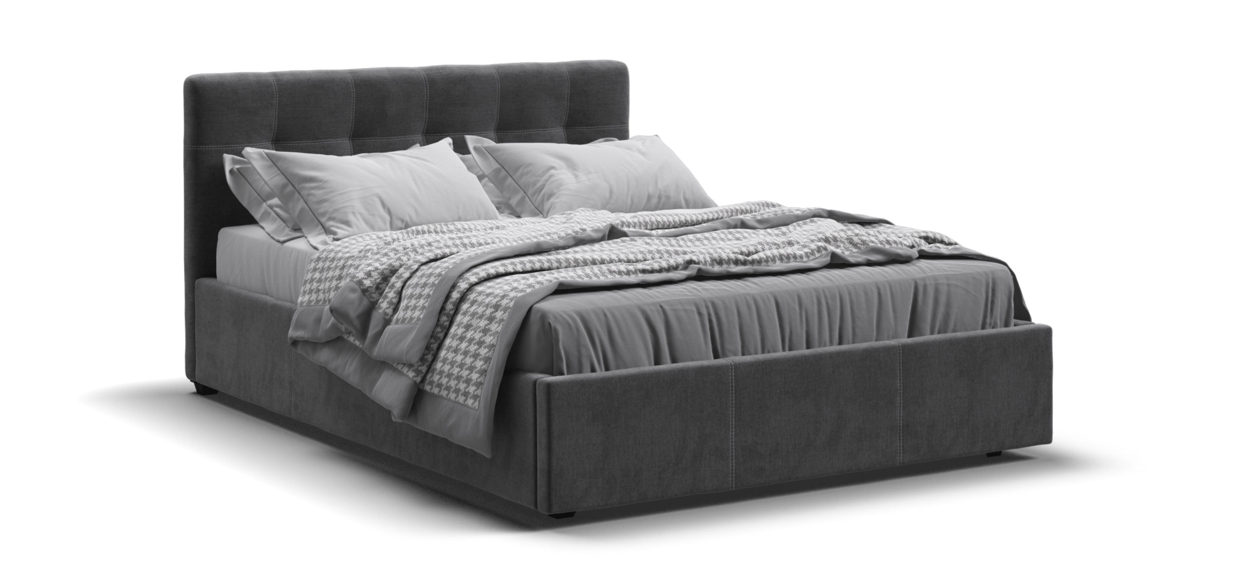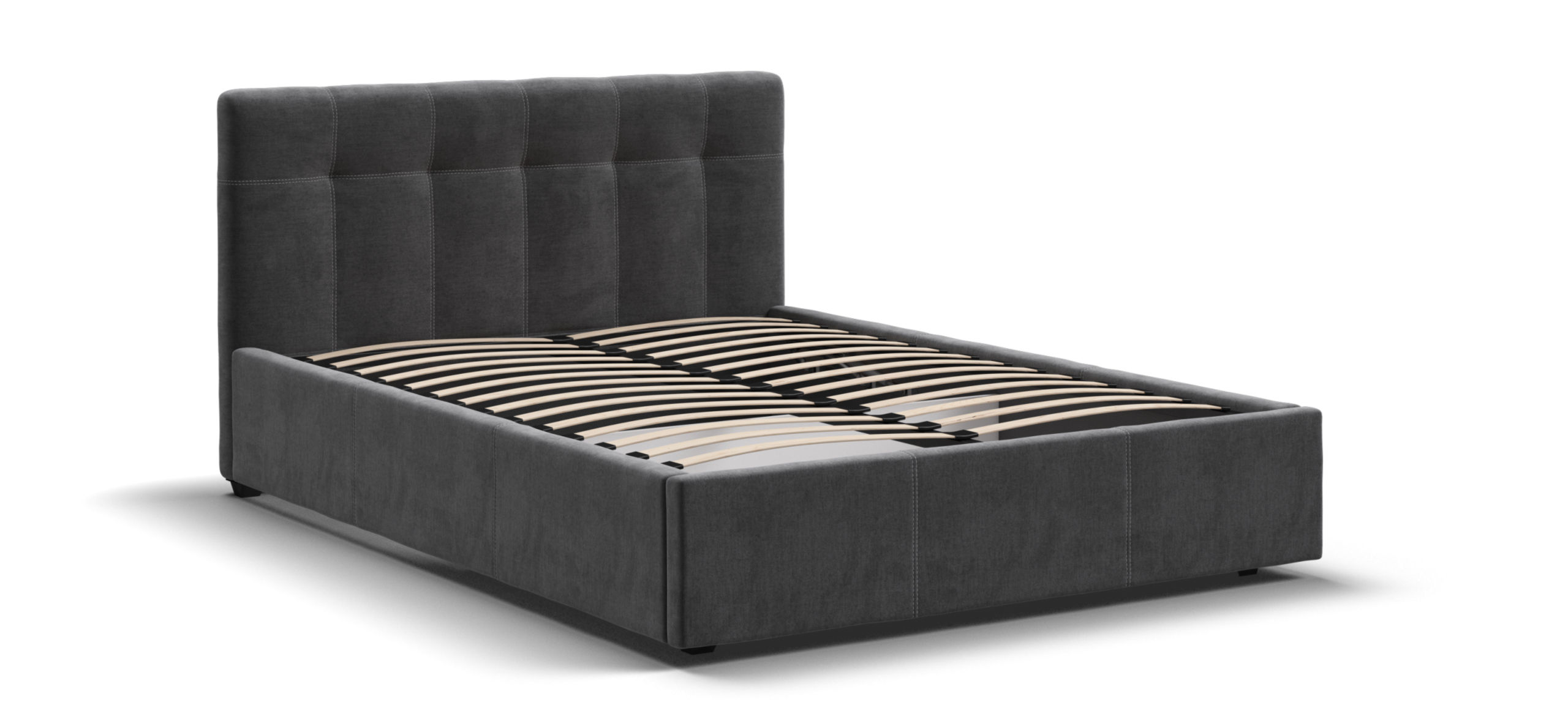 Мягкая спинка кровати удобна для чтения книг или просмотра сериалов перед сном, что добавляет дополнительный уровень комфорта. Дизайн кровати соответствует современным тенденциям: двойная стежка и утяжки на мягкой спинке подчеркивают изысканный вкус владельца, добавляя интерьеру спальни нотку роскоши.