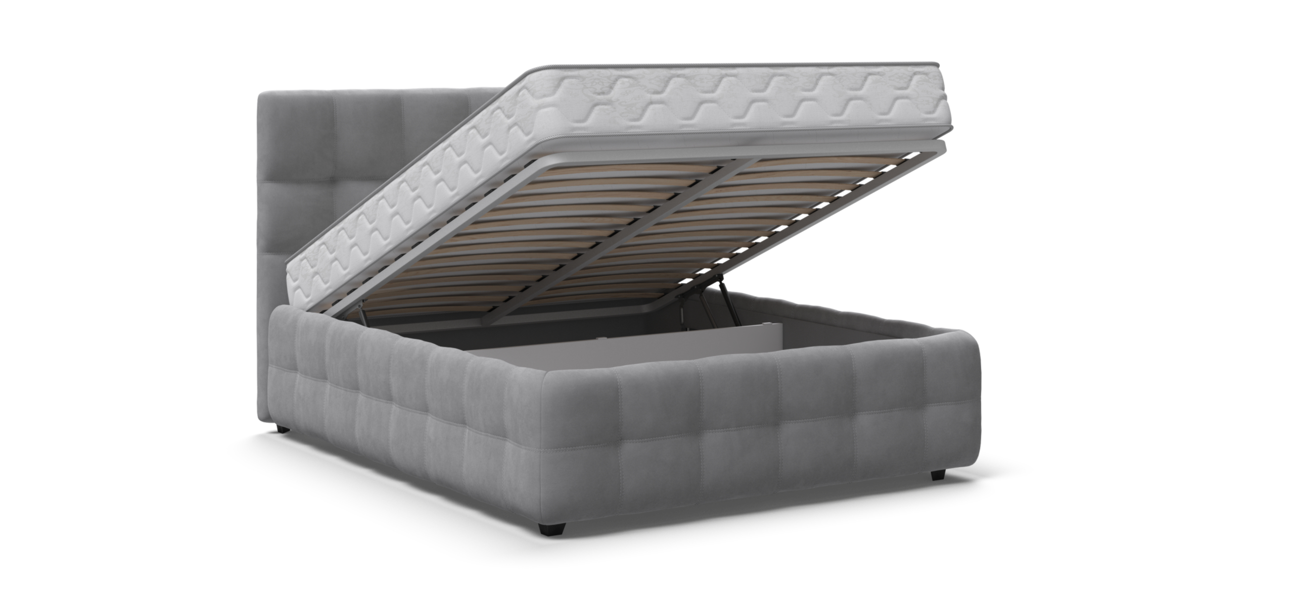 Особое внимание заслуживают газовые лифты SpaceLift, изготовленные из авиационного алюминия. Они обеспечивают лёгкое и плавное поднятие матраса, что делает доступ к отсеку для хранения быстрым и удобным. Дизайн 360 предполагает, что задняя часть спинки кровати также выполнена из основной ткани, что позволяет размещать кровать не только у стены, но и в центре комнаты, сохраняя при этом её эстетическую привлекательность.