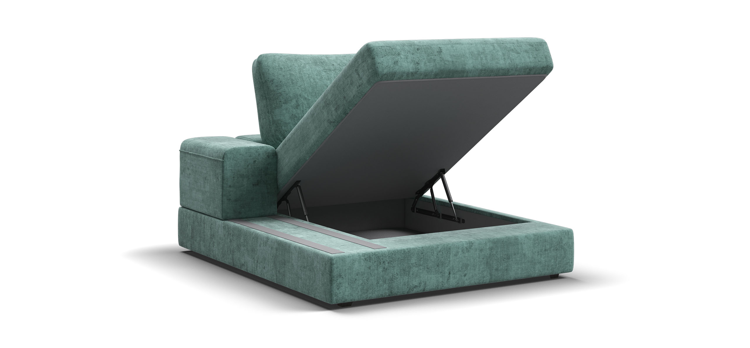 Металлический каркас обеспечивает долговечность и надежность. Диван выполнен с учетом последних требований в области экологии – не содержит ЛДСП, бельевые ящики из биоразлагаемого текстиля. Съёмные аксессуары помогут настроить необходимый вам функционал.