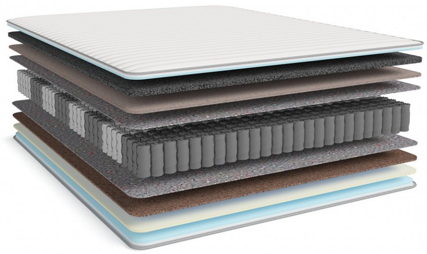 НаполнениеУгольная пена CARBONE FOAM, слой BOSS SKIN, термовойлок, НПБ COMFY SPRING 950, латексированная кокосовая койра, искусственный латекс