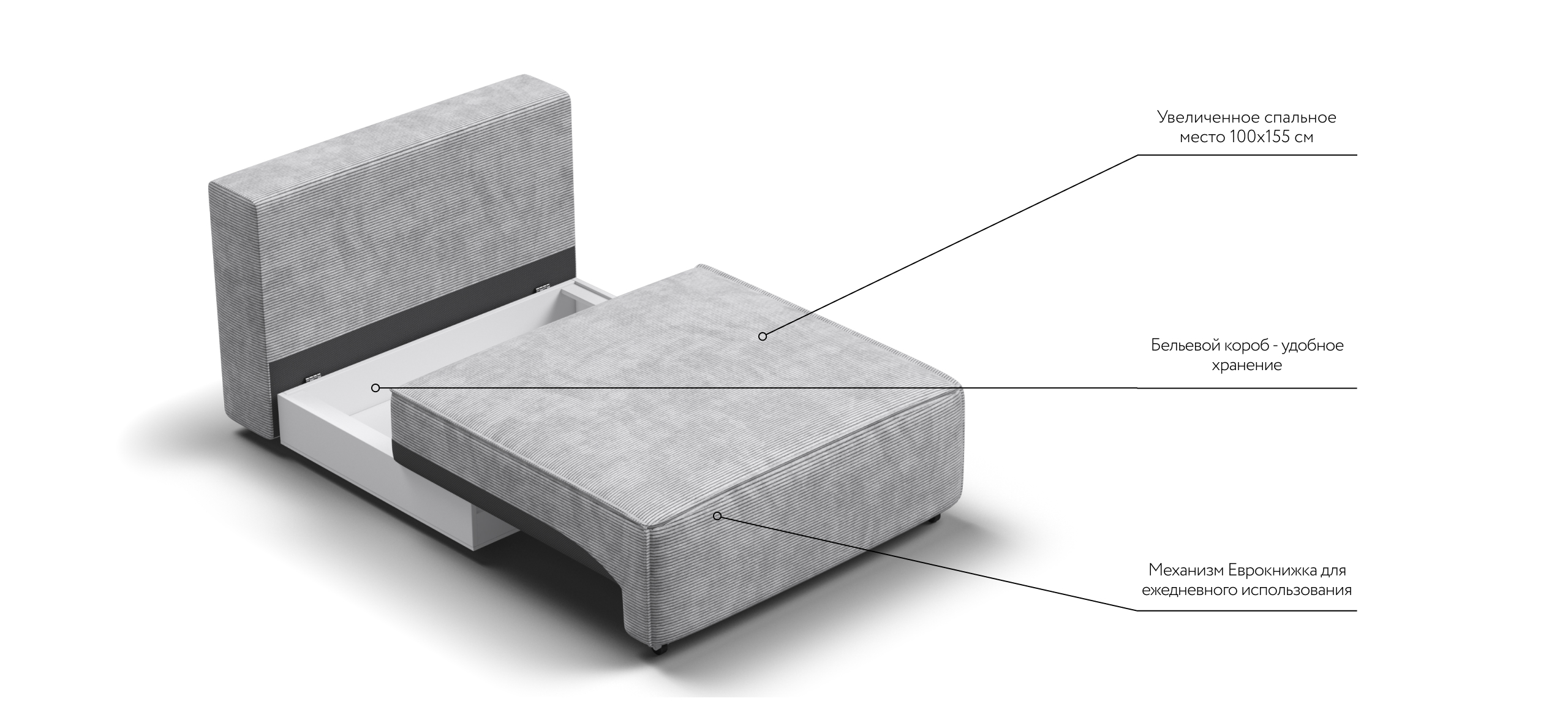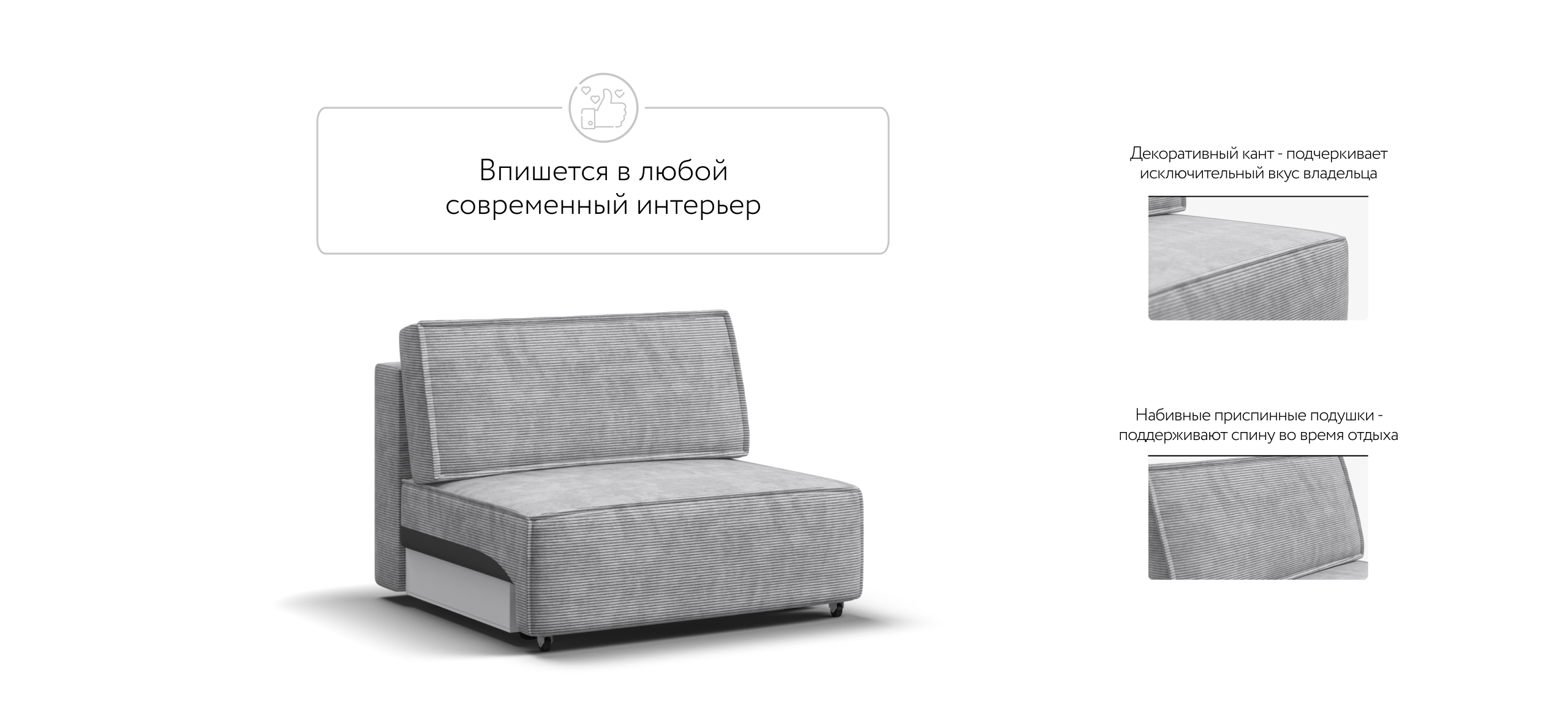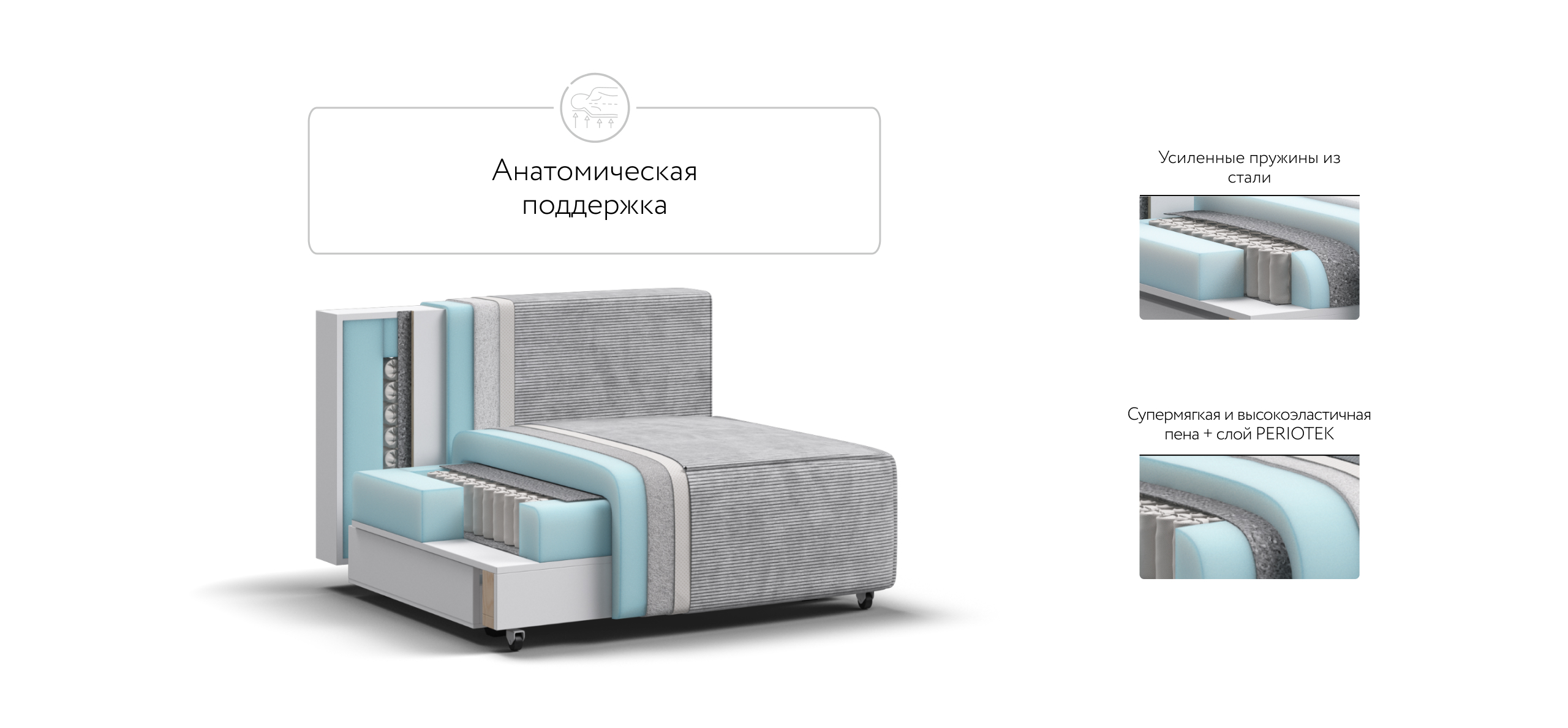Спальное место Босс Софт Модуль является частью модульной системы. Супер удобная глубокая посадка сиденья и высокоэластичная пена с дополнительным слоем Периотек создадут максимальный комфорт во время отдыха.
