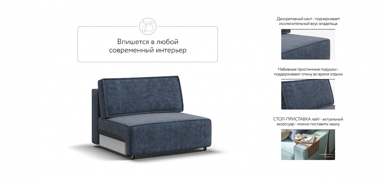 Спальное место Босс Софт Модуль является частью модульной системы. Супер удобная глубокая посадка сиденья и высокоэластичная пена с дополнительным слоем Периотек создадут максимальный комфорт во время отдыха.