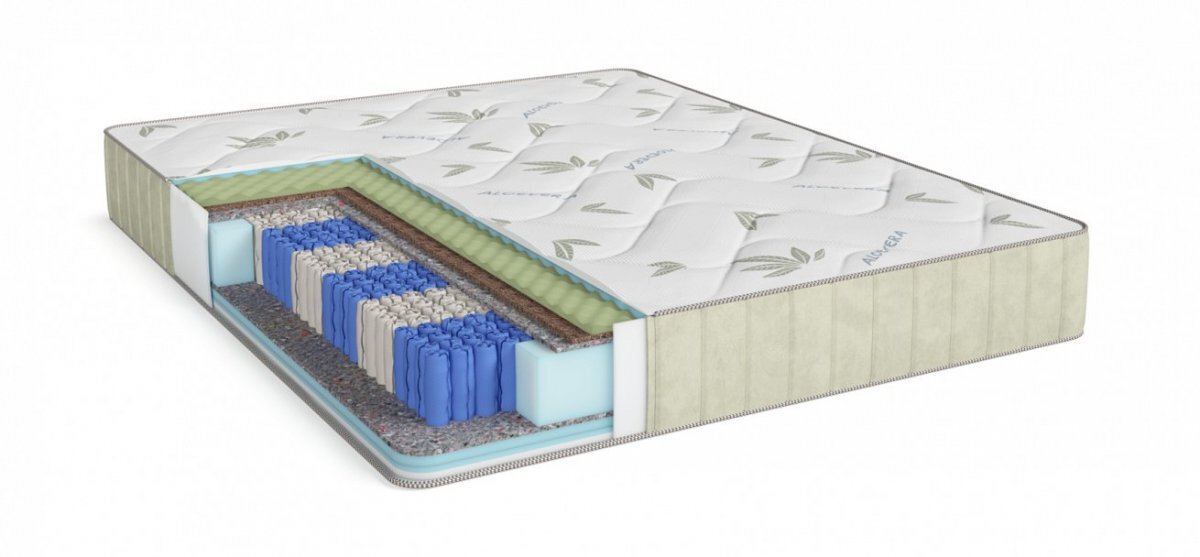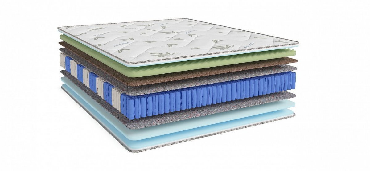 Латекс натуральный с фигурной резкой и алое, латексированная кокоcовая койра, термовойлок, НПБ KING SPRING 1500, пена CLOUDFOAM