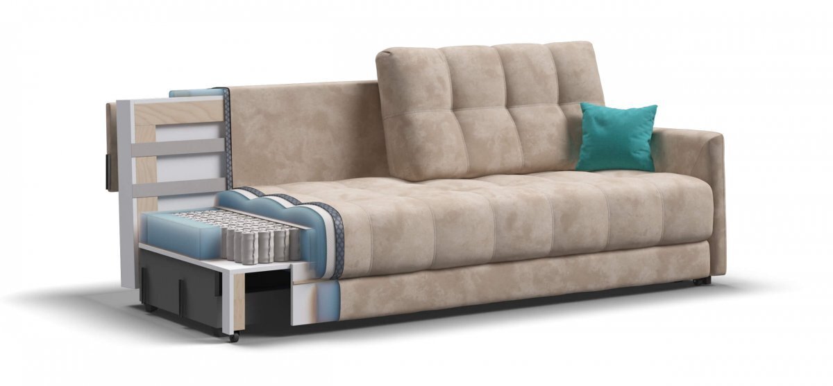 О комфорте и здоровье Вашей спины заботится матрас, сочетающий в себе независимый пружинный блок и высокоэластичную пену. Еще одним преимуществом выступает система раскладки, которая увеличивает глубину сидения на 30%.