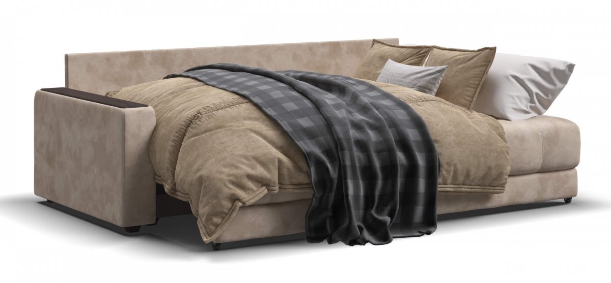 Прочный каркас, изготовленный из фанеры и древесных плит, увеличивает срок службы, а удобство гарантируется благодаря матрасу с независимым пружинным блоком и супермягкой пеной FLEX.