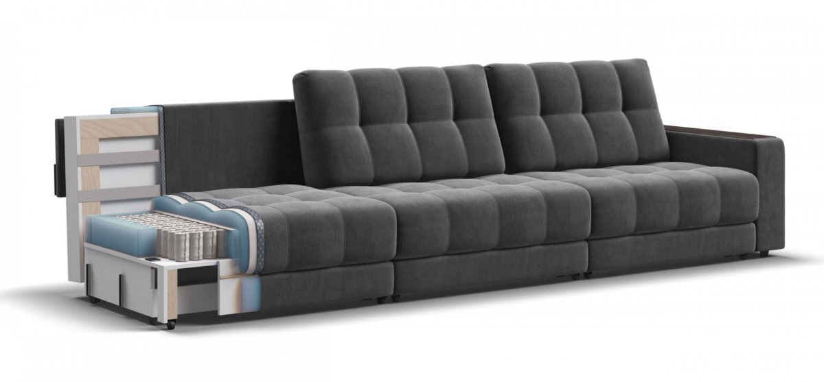 Диван BOSS GRAND - большой, стильный и комфортный диван, предназначенный для просторной комнаты. Продуманный до мелочей диван BOSS сочетает в себе надежный каркас, мягкие ткани, многофункциональность и быструю сборку за 1 минуту без инструментов - ощутите комфорт у себя дома!