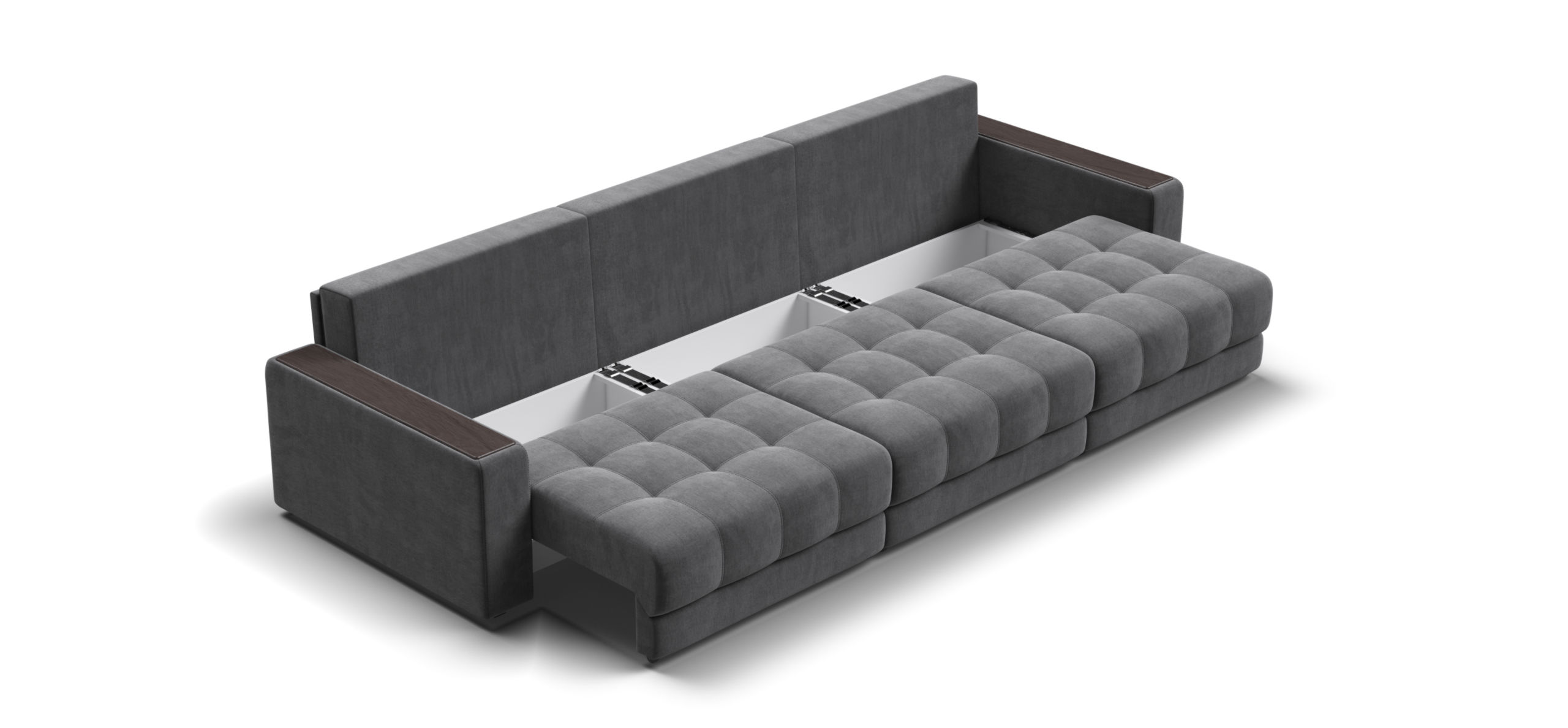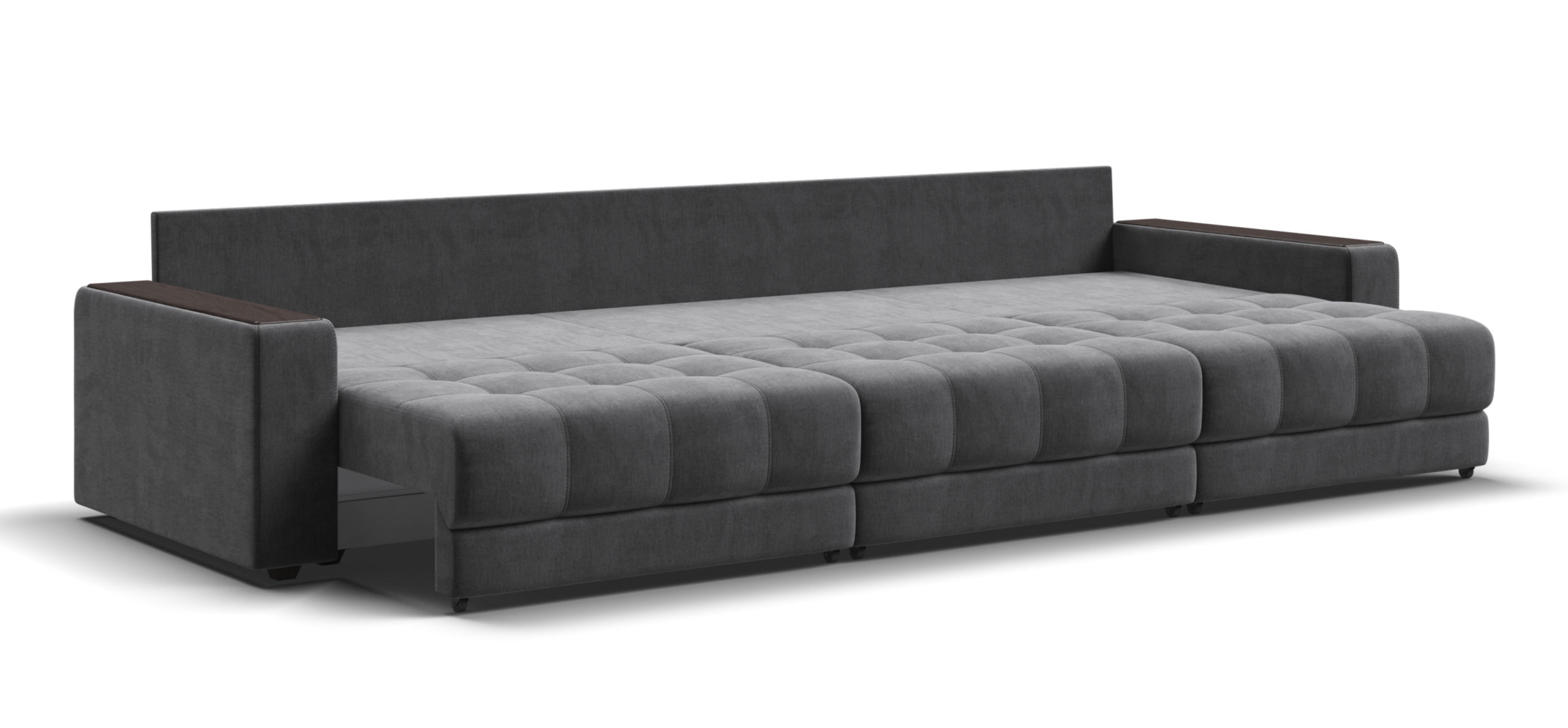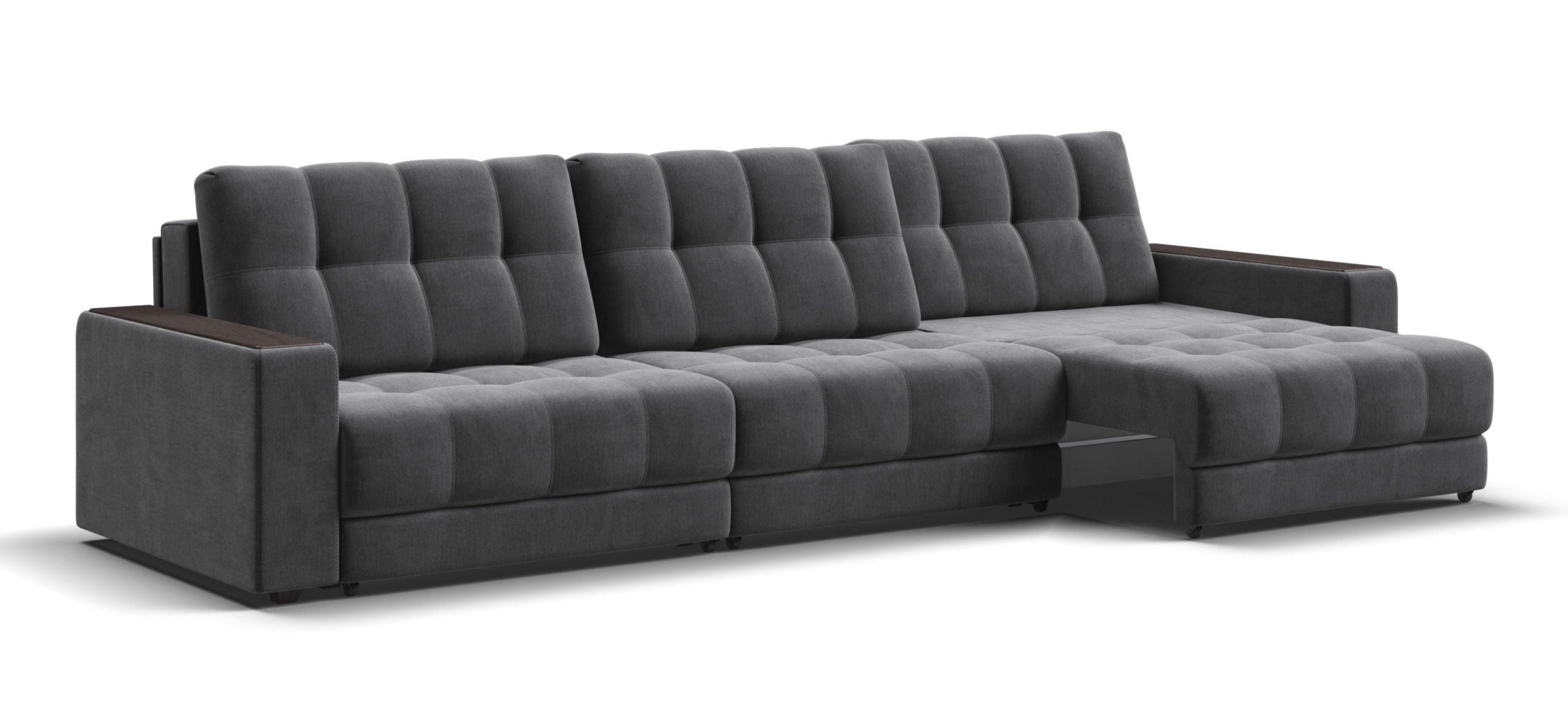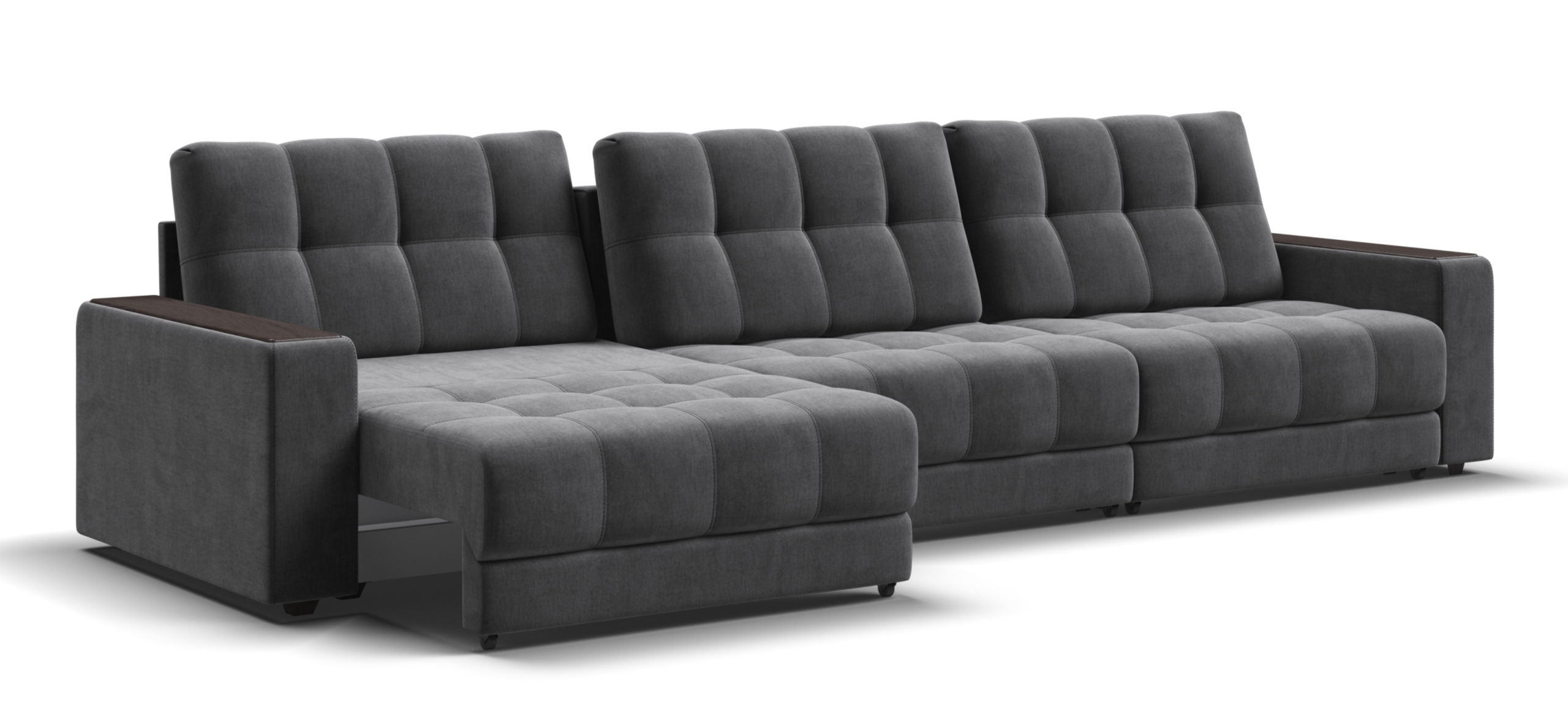 Каждое посадочное место выдвигается вперед и можно получить диван с правым или левым углом, а также получить П-образную форму дивана.