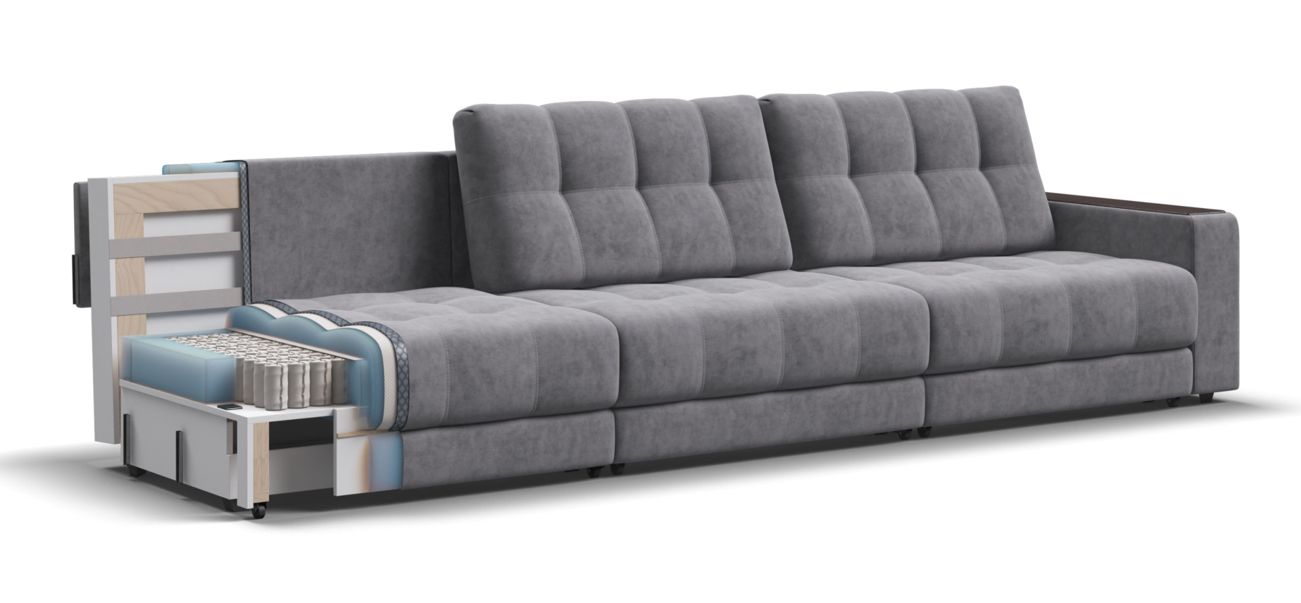 Диван Босс Гранд - большой, стильный и комфортный диван, предназначенный для просторной комнаты. Продуманный до мелочей диван Босс сочетает в себе надежный каркас, мягкие ткани, многофункциональность и быструю сборку за 1 минуту без инструментов - ощутите комфорт у себя дома!