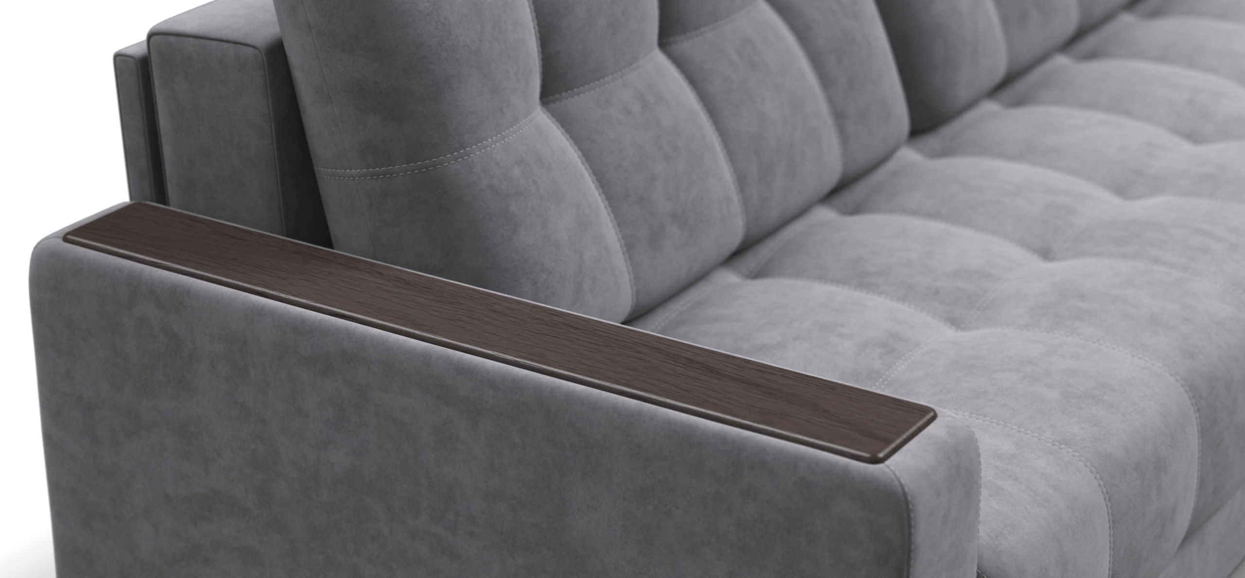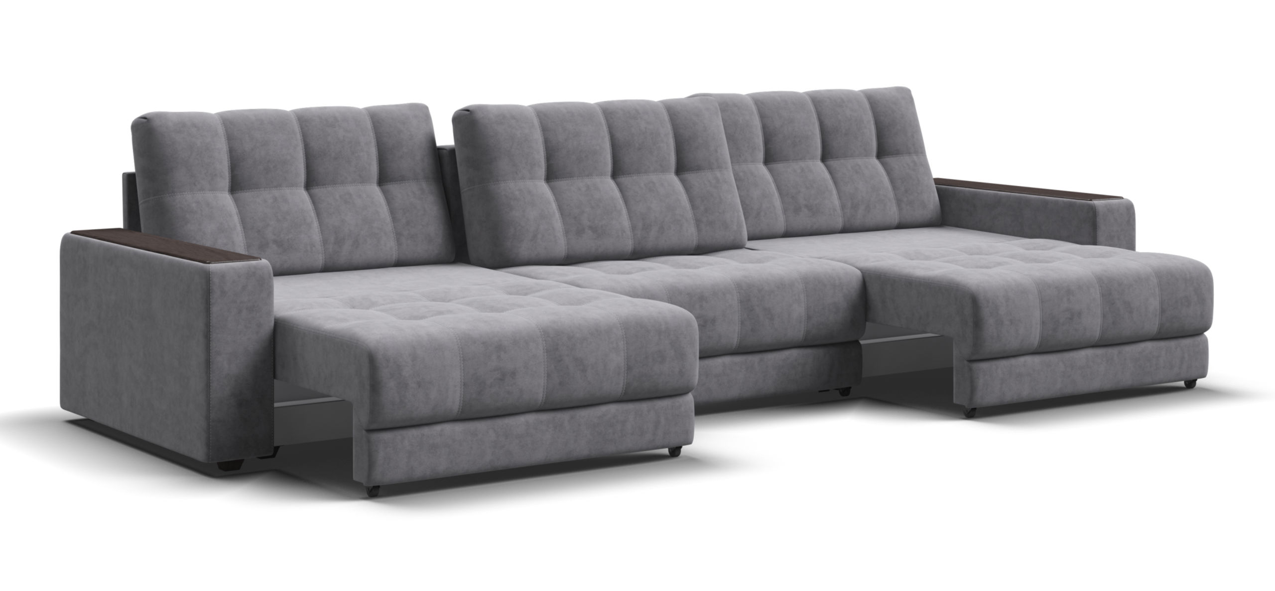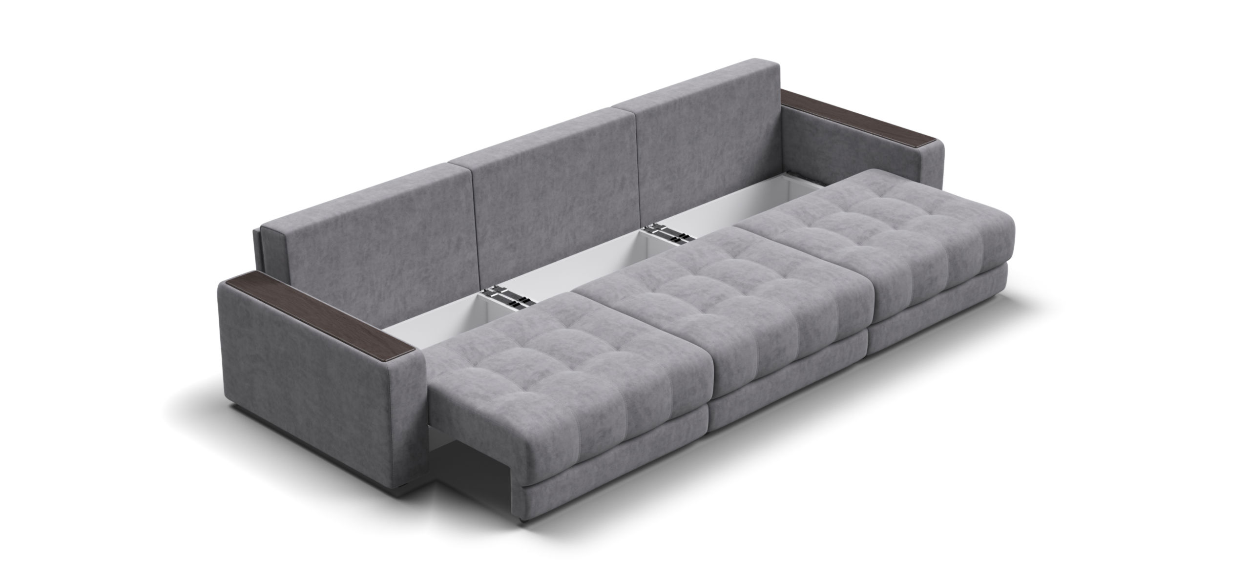 Каждое посадочное место выдвигается вперед и можно получить диван с правым или левым углом, а также получить П-образную форму дивана.