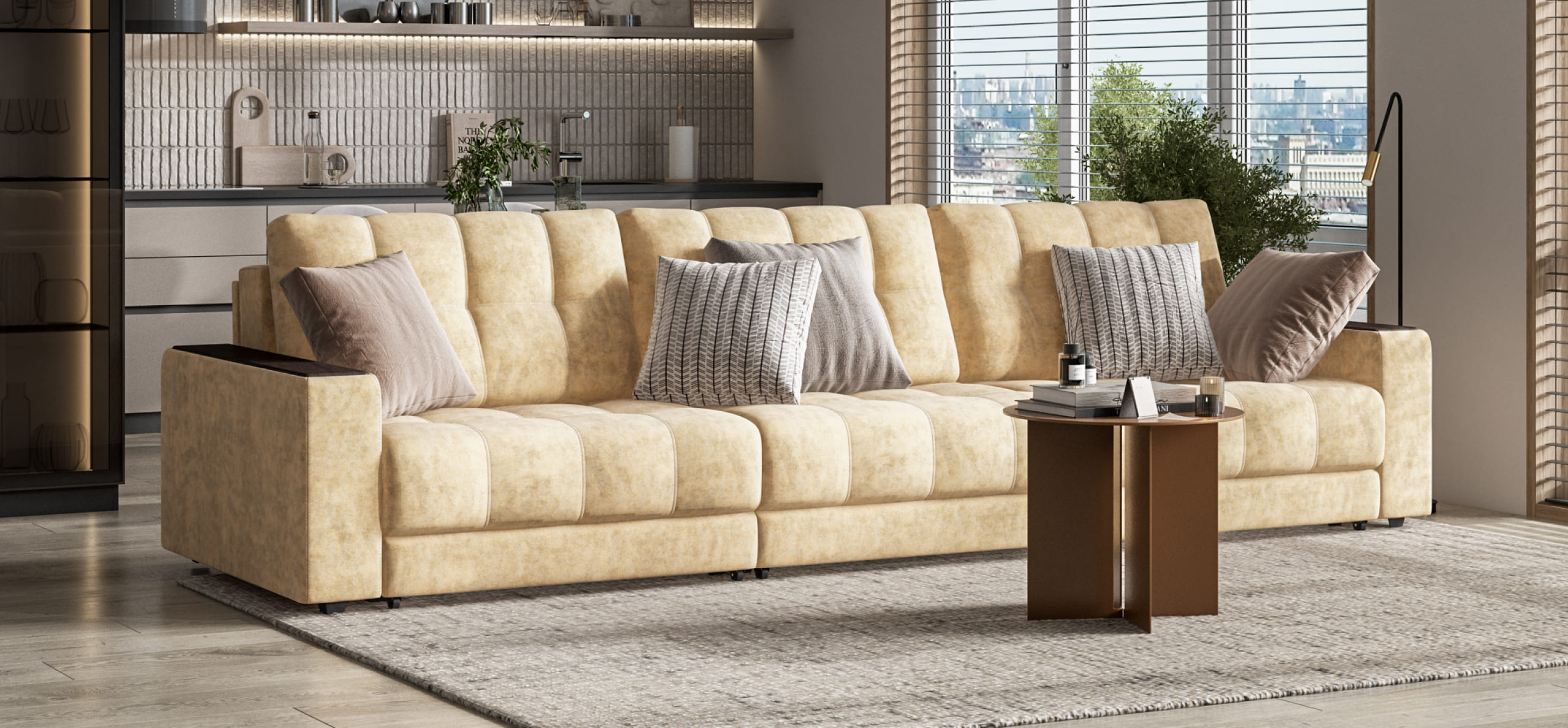 Диван Босс Гранд Велюр Роял шампань