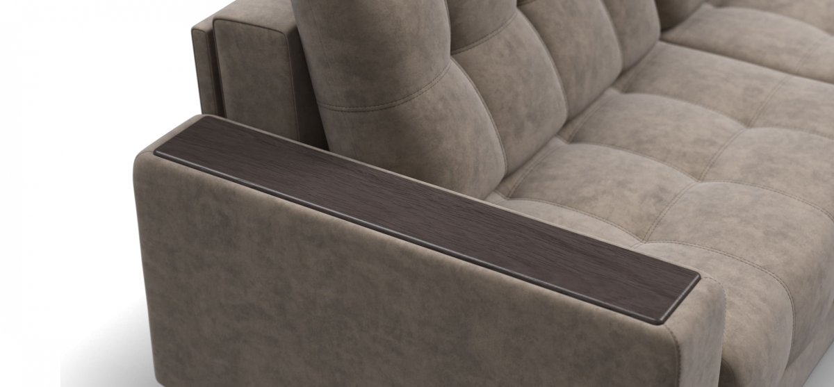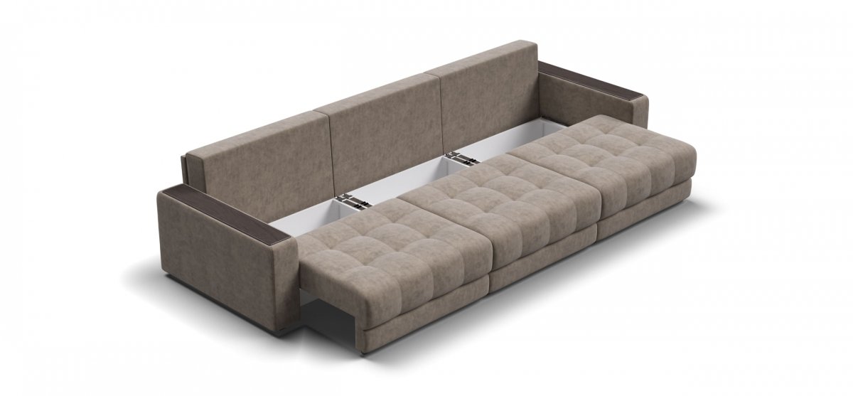 Каждое посадочное место выдвигается вперед и можно получить диван с правым или левым углом, а также получить П-образную форму дивана.