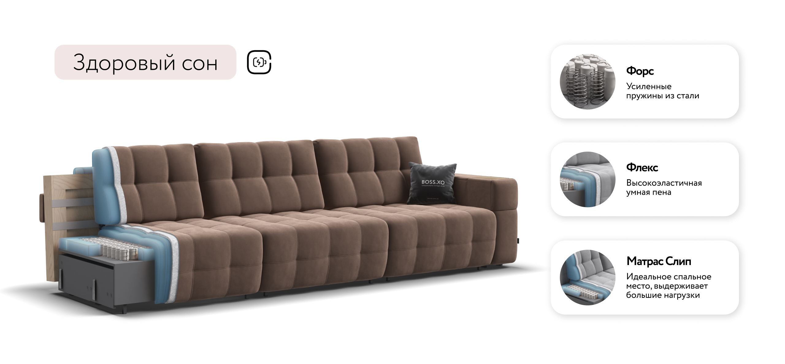 Босс ХО Макс по своим характеристикам лучше многих диванов с ценой от 300 тысяч рублей.