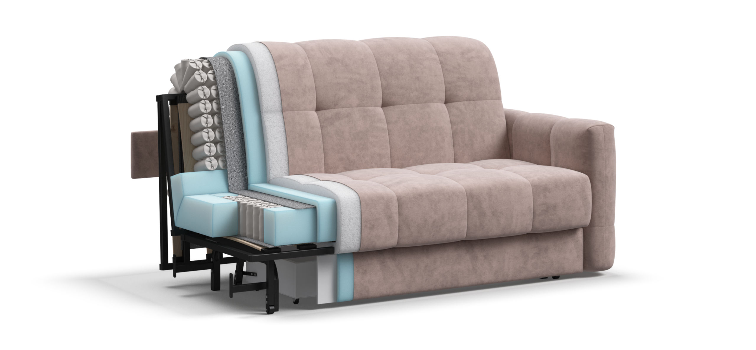 Инновационный анатомический матрас в диване, высотой 15 см., выполнен из полноценного независимого пружинного блока Босс Фит и высокоэластичной пены Флекс – гарантия здорового сна, как на кровати!