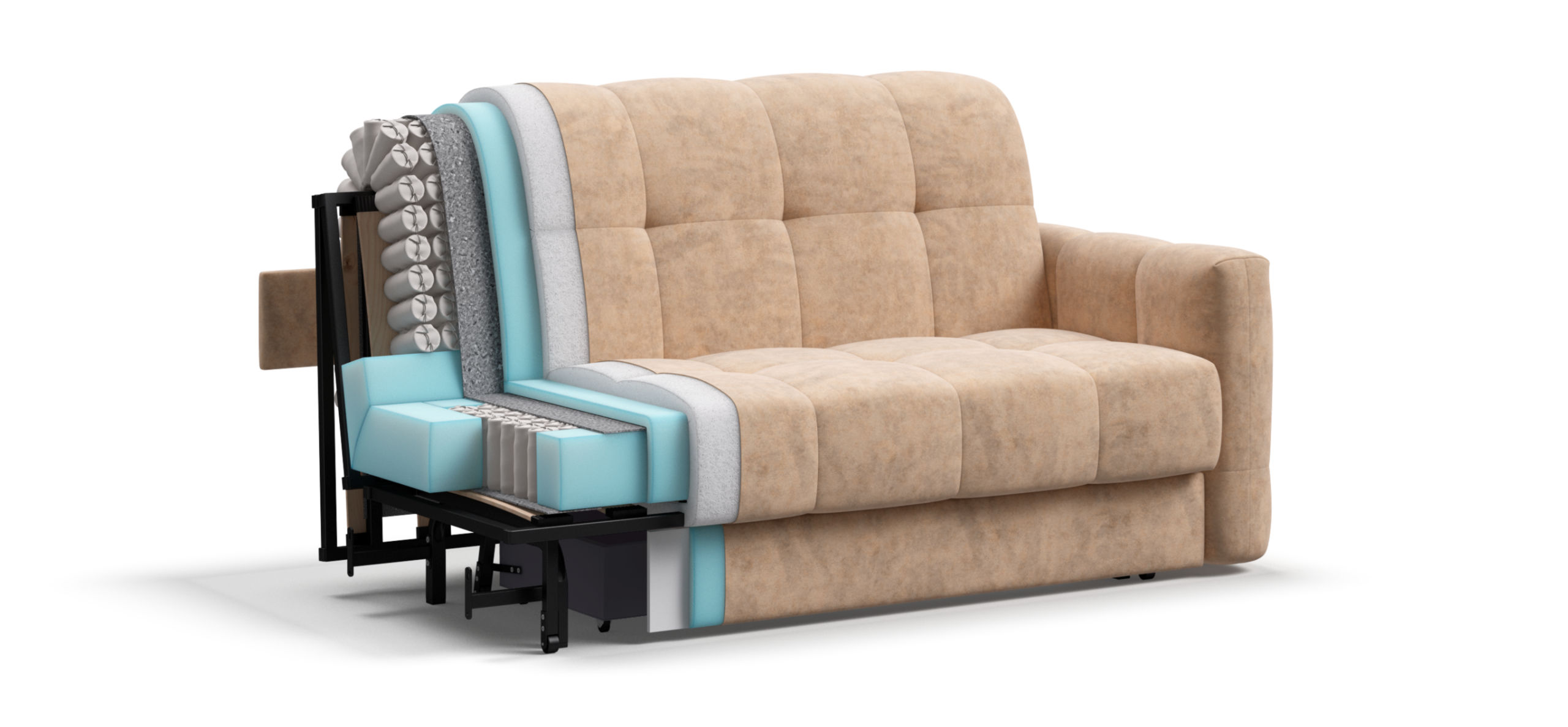 Инновационный анатомический матрас в диване, высотой 15 см., выполнен из полноценного независимого пружинного блока Босс Фит и высокоэластичной пены  Флекс – гарантия здорового сна, как на кровати!