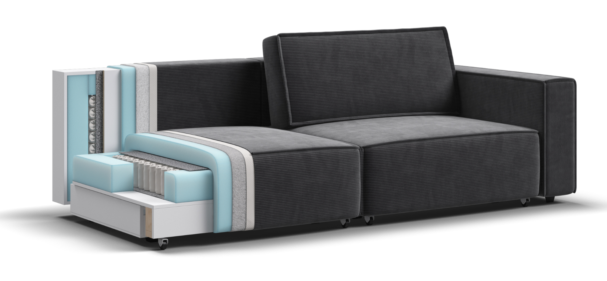 BOSS SOFT Modool – Модульная система в стиле лофт. Сочетание надежности, стиля и функциональности. Суперудобная глубокая посадка и высокоэластичная пена с дополнительным слоем PERIOTEK создадут максимальный комфорт во время отдыха.Широкие прямоугольные подлокотники, строгая симметрия и минималистичная отделка идеально дополнит современный интерьер Вашей гостиной.Модульная система позволит создать любую комбинацию от уютного кресла до огромного дивана для большой компании.Простой и надежный механизм еврокнижка с легкостью превратит модульную систему в комфортное спальное место.