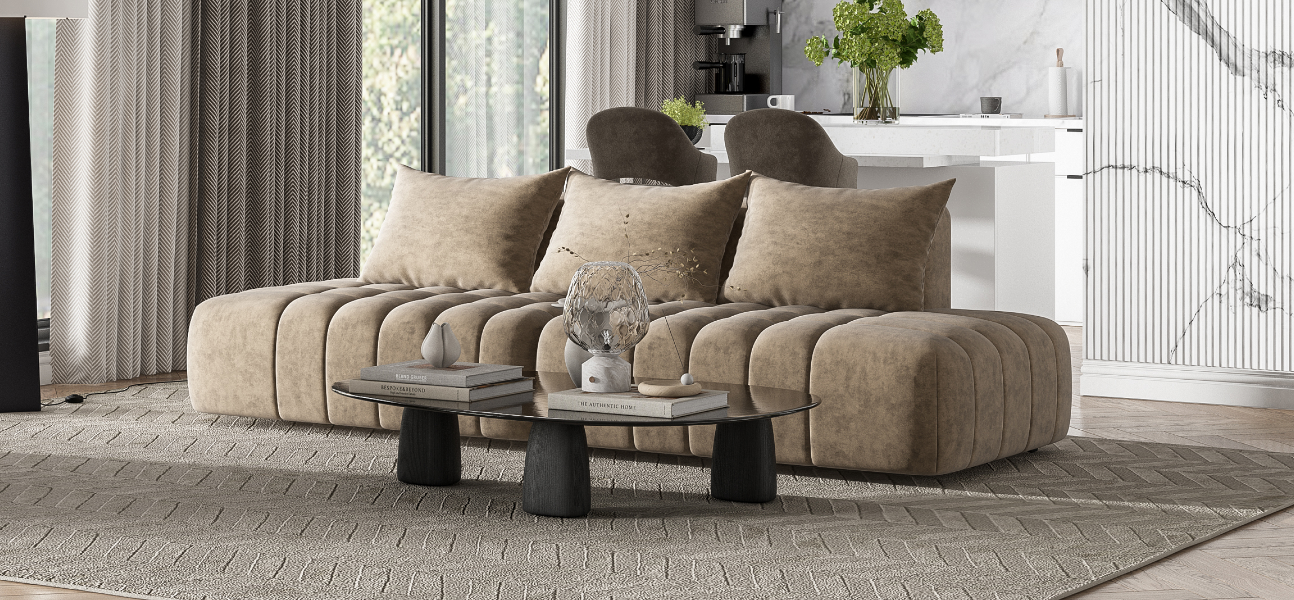 Глубокое сиденье и независимые пружины в основании словно созданы для полного расслабления, а мягкие спинки обеспечивают комфорт без лишних подушек.