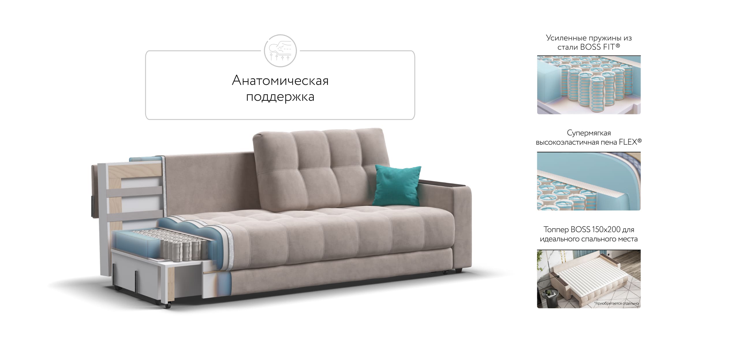 Стильный диван для тех, кто ищет максимальный комфорт. Продуманный до мелочей диван Босс сочетает в себе надежный каркас, мягкие ткани, многофункциональность и быструю сборку за 1 минуту без инструментов - ощутите комфорт у себя дома!