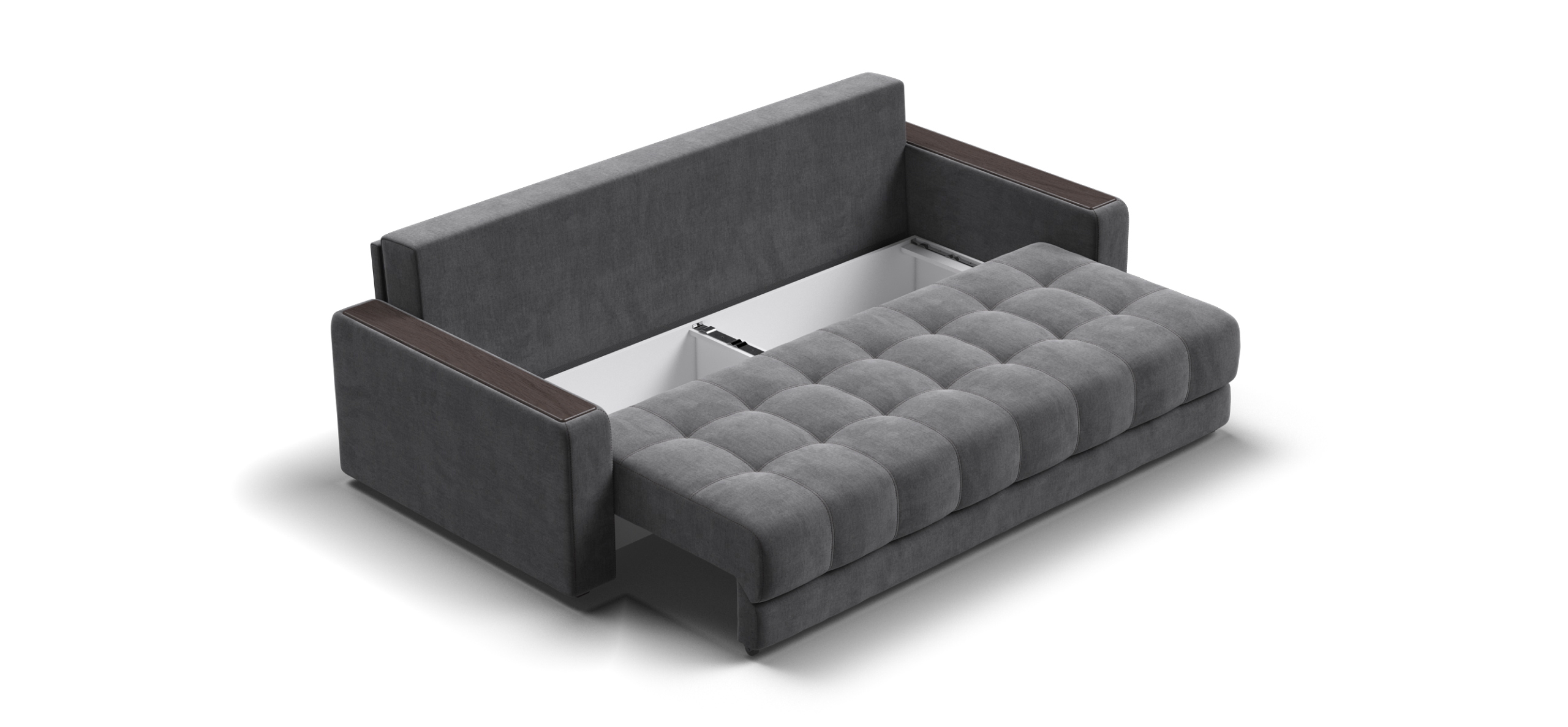Легкая трансформация в три положения создаст для Вас максимально комфортный отдых, а улучшенное анатомическое основание в диване обеспечит Вам здоровый сон. Спинка защищает от соприкосновения со стеной во время сна.