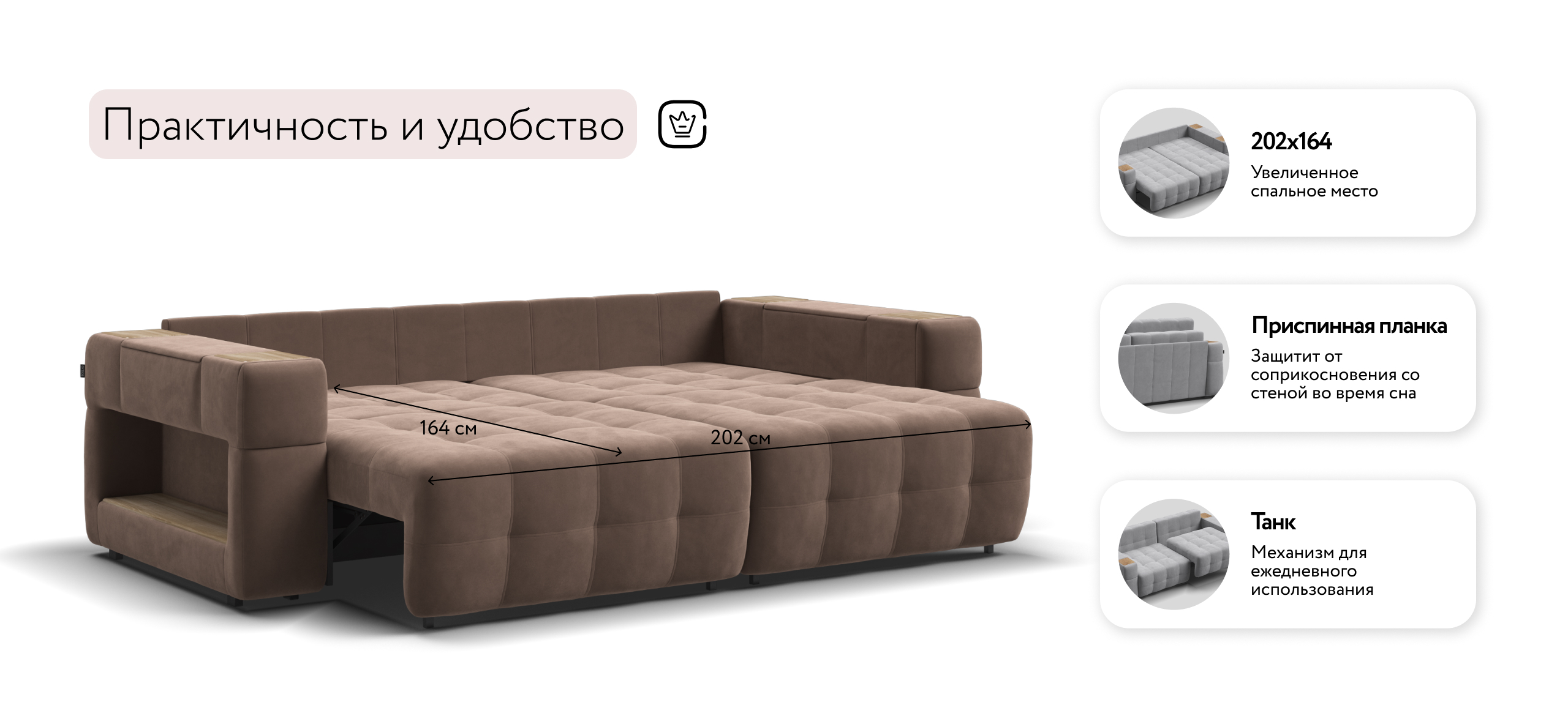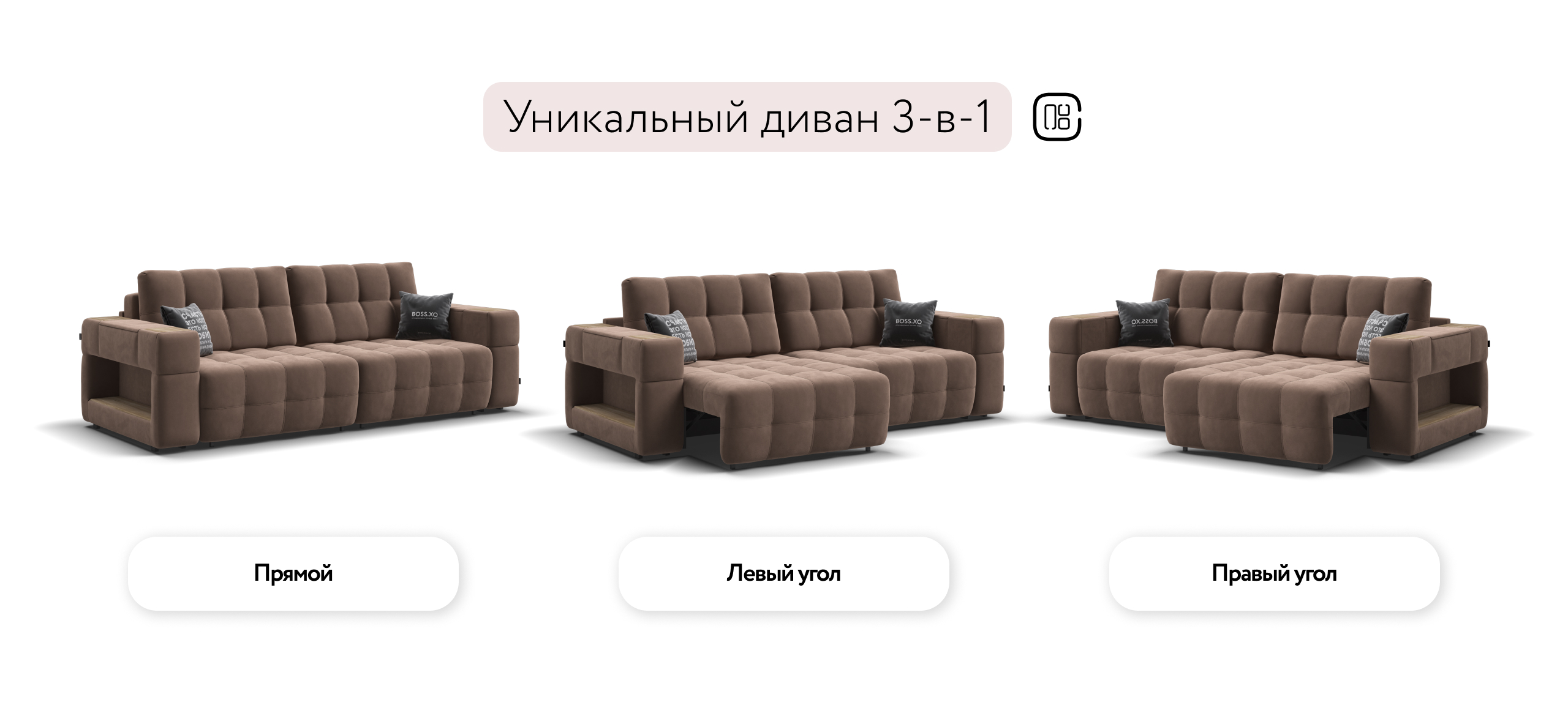 Босс ХО - это и прямой и угловой диван сразу, за 10 секунд вы можете превратить его в правый или левый угол.