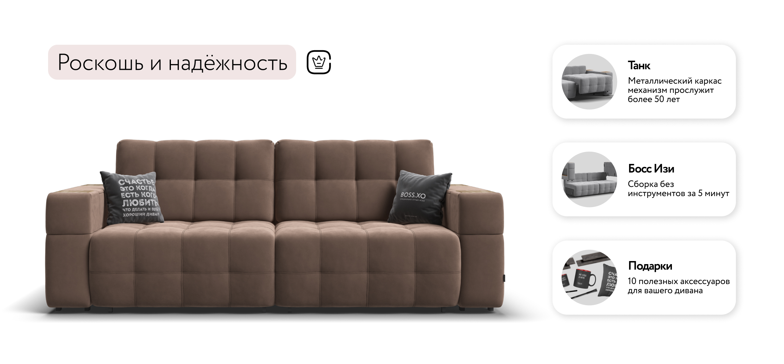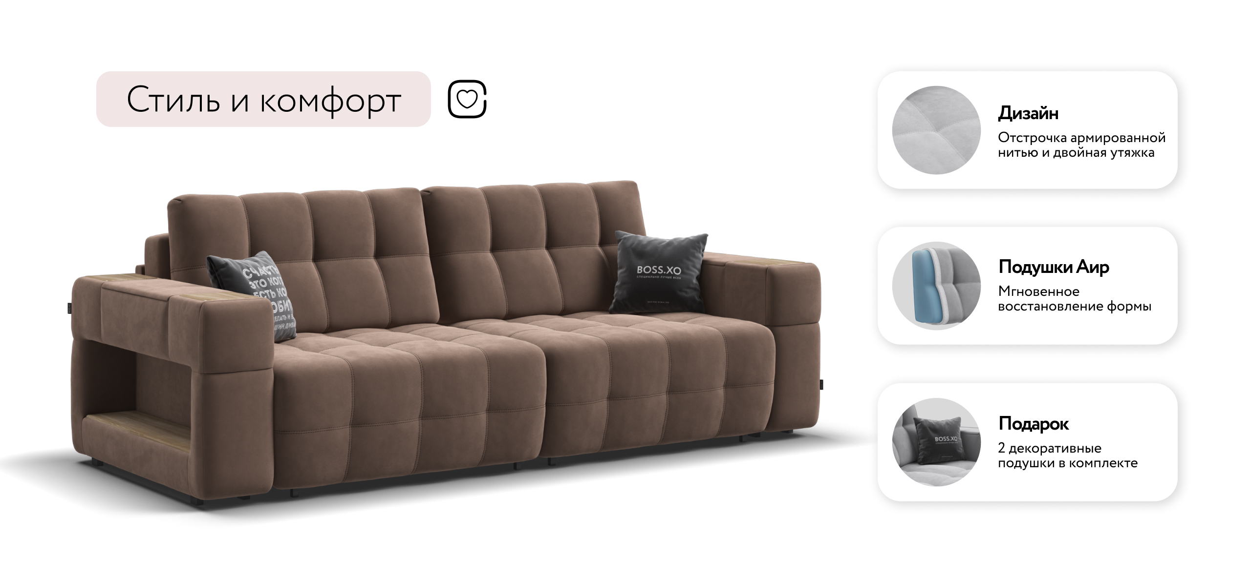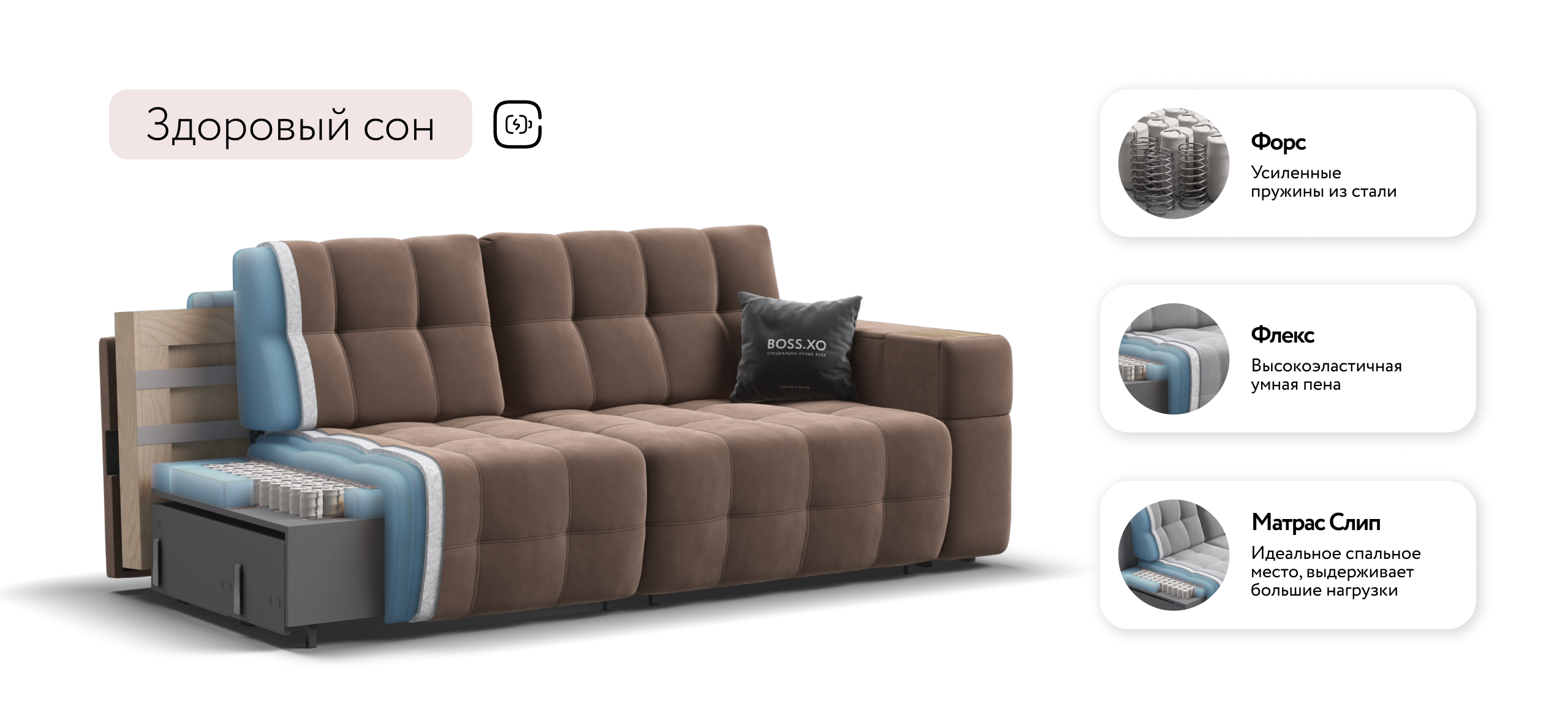 С гордостью представляем новый диванБосс ХО, разработанный специально для красоты, комфорта и радости в Вашем доме. Это не просто диван - в нём десятки новых функций, которые сделали его центром притяжения для всей Семьи.