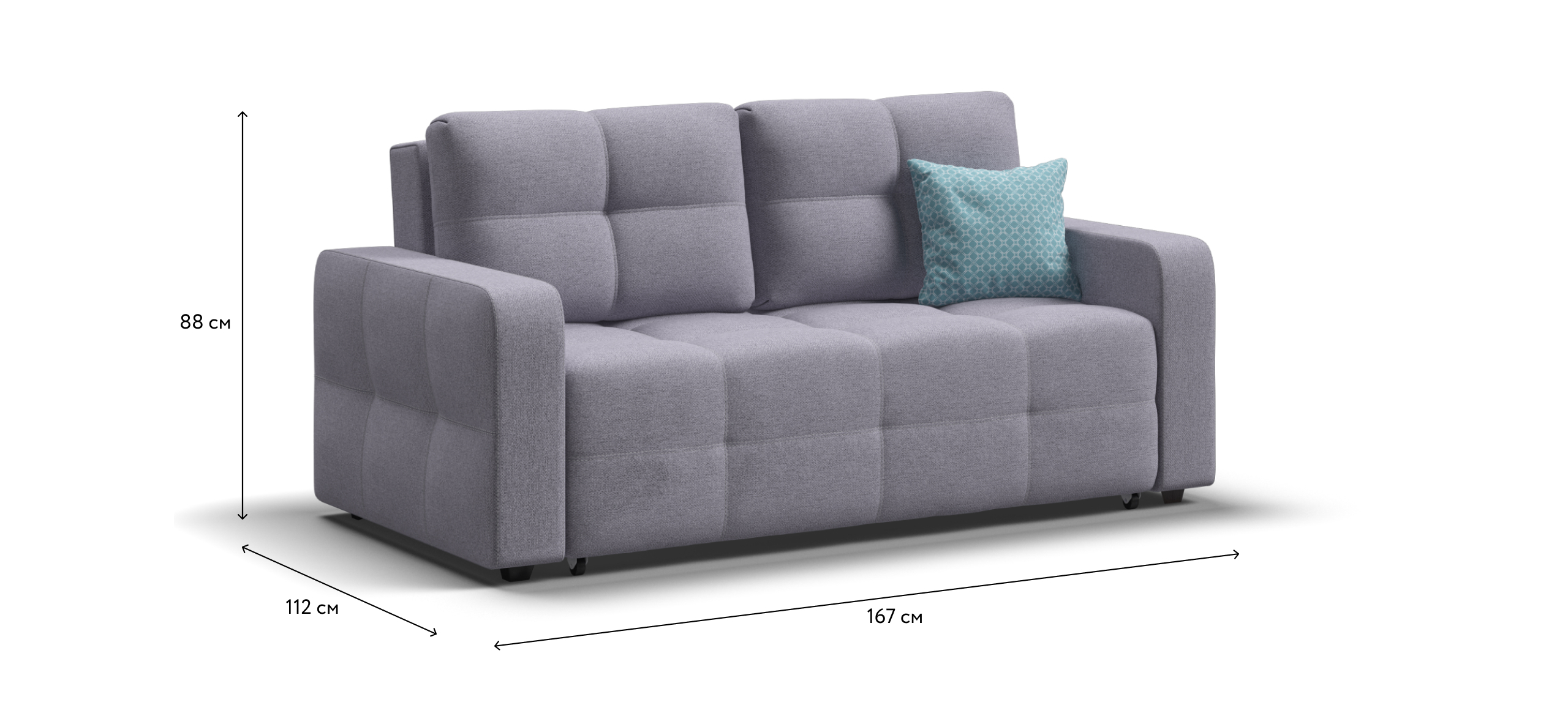 Диван Денди двухместный с механизмом «ИЗИ РОЛЛ», который подойдет для любой современной квартиры. Компактный размер дивана сочетается с оптимальным спальным местом, на котором могут с комфортом разместиться 2 человека.
