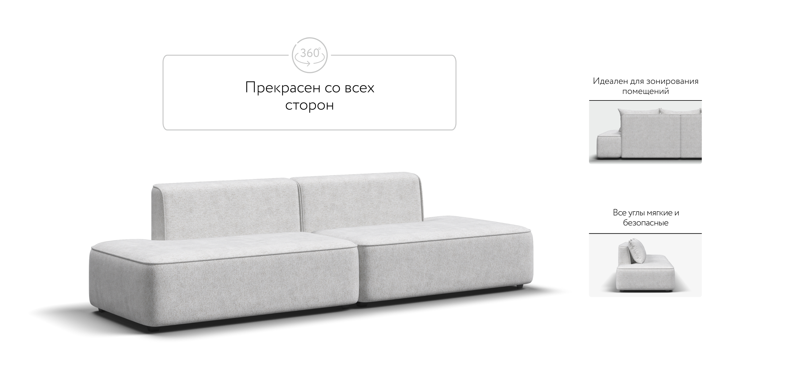Благодаря инновационной системе креплений и быстросъёмным элементам Вы с лёгкостью можете поменять конфигурацию и адаптировать диван под новое пространство.