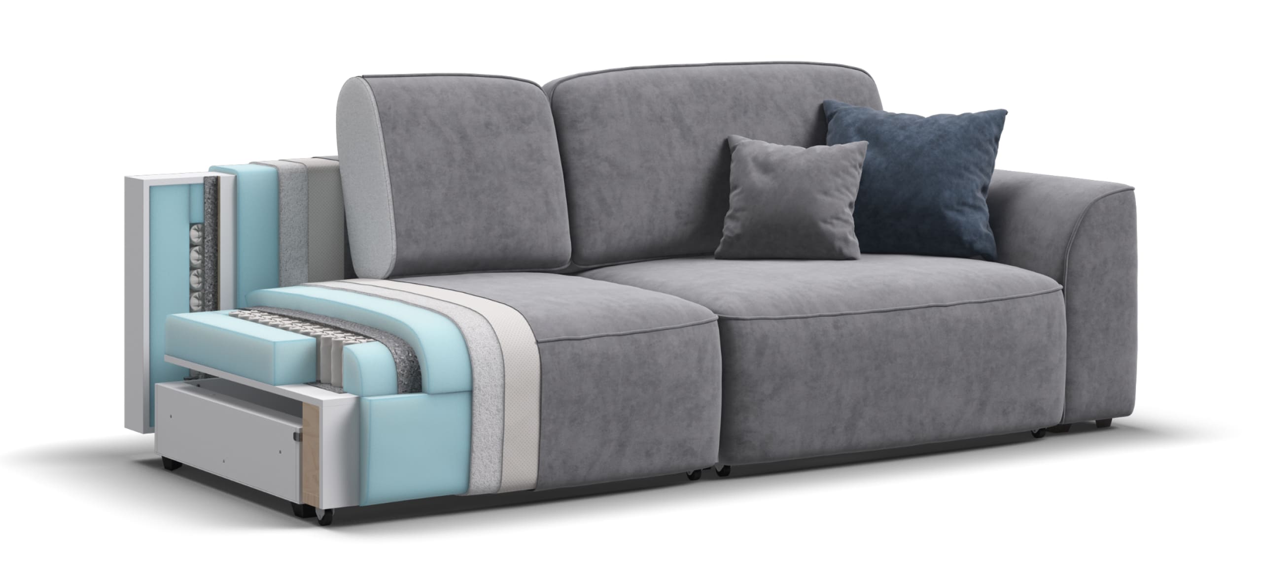 Комфортная посадка, скругленные линии, объемные подушки - диван, который наполнит ваш дом уютом и комфортом. Каждое посадочное место можно выдвинуть вперед и получить угловой диван, на котором с комфортом разместится небольшая компания. А в разложенном виде диван превращается в комфортное спальное место.