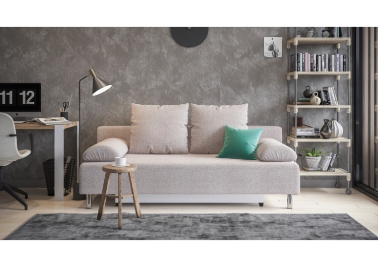 Надежный механизм еврокнижка и опоры на роликах сделают легким ежедневное использование дивана в качестве спального места и обезопасят от повреждения напольное покрытие. В основании дивана находятся два вместительных бельевых ящика.
