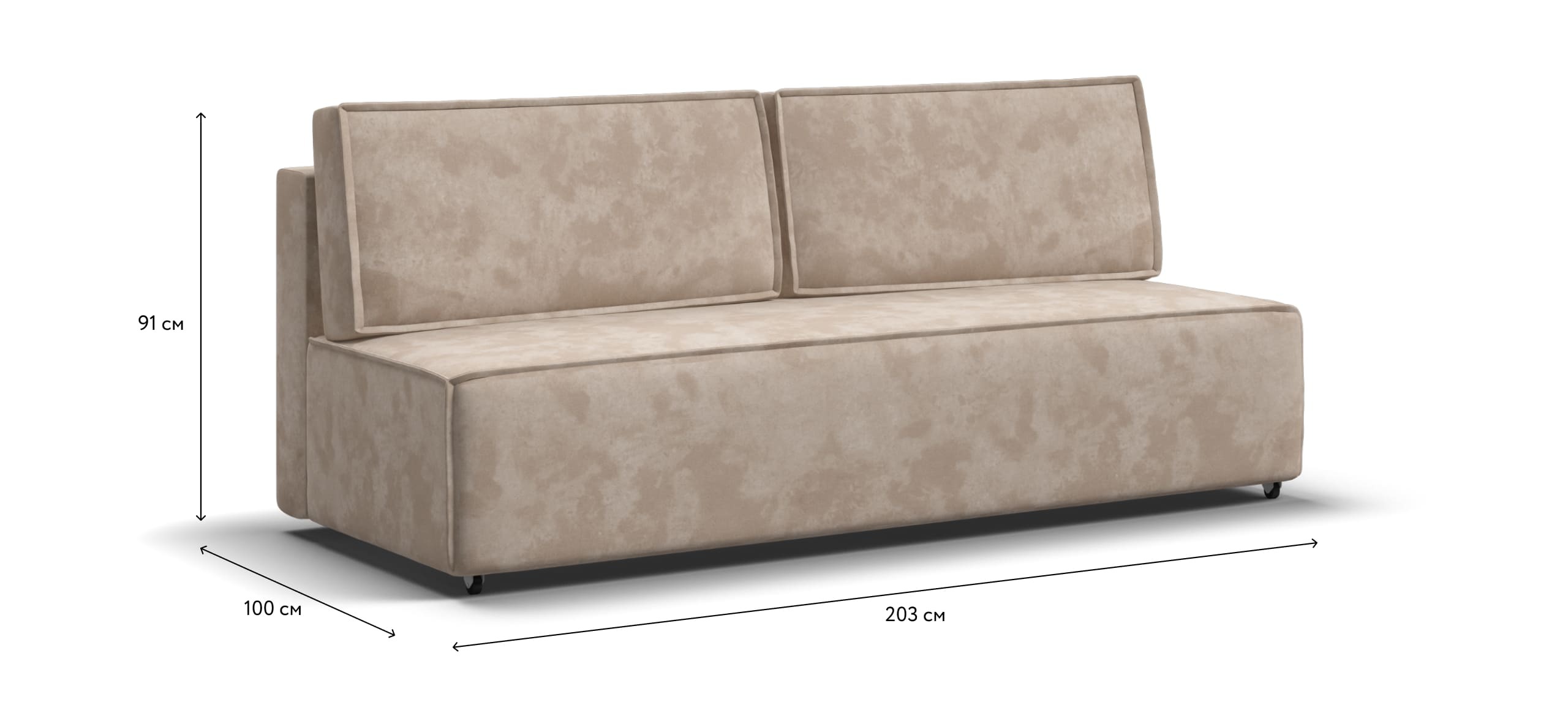 Несмотря на скромные габаритные размеры модель обладает довольно широким спальным местом — 150 см, на котором с комфортом могут разместиться 2 человека. При этом днем он будет служить удобным местом для отдыха благодаря наличию мягких набивных подушек, которые поддерживают спину, позволяя расслабиться, например, за просмотром любимого фильма.
