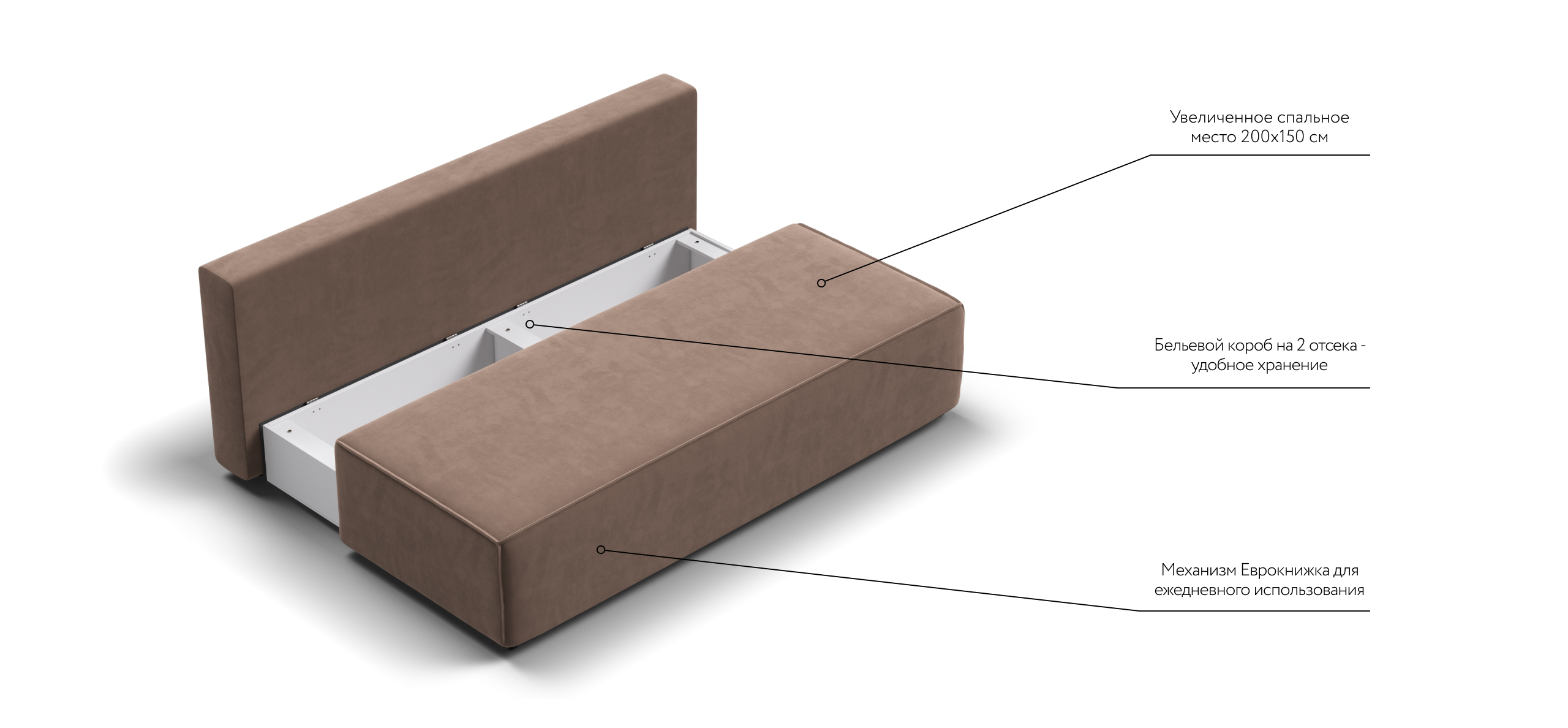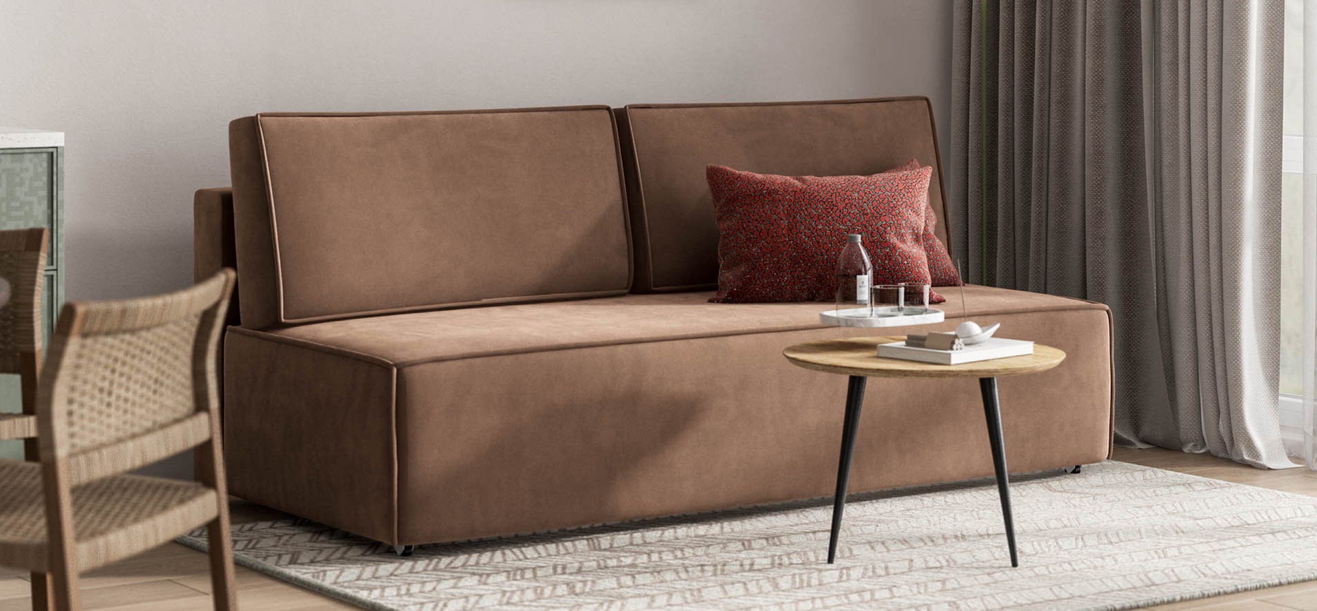 Диван НОРД МИНИ благодаря отсутствию подлокотников подойдет даже для небольшого помещения. Строгая симметрия, минималистичная отделка идеально дополнит современный интерьер в стиле лофт, а стильный декоративный кант по периметру подчеркнет исключительный вкус владельца.Днем вы с комфортом сможете провести время за просмотром любимого фильма, а ночью трансформировать диван в идеально ровное спальное место без стыков, благодаря анатомическому матрасу и надежному механизму еврокнижка.