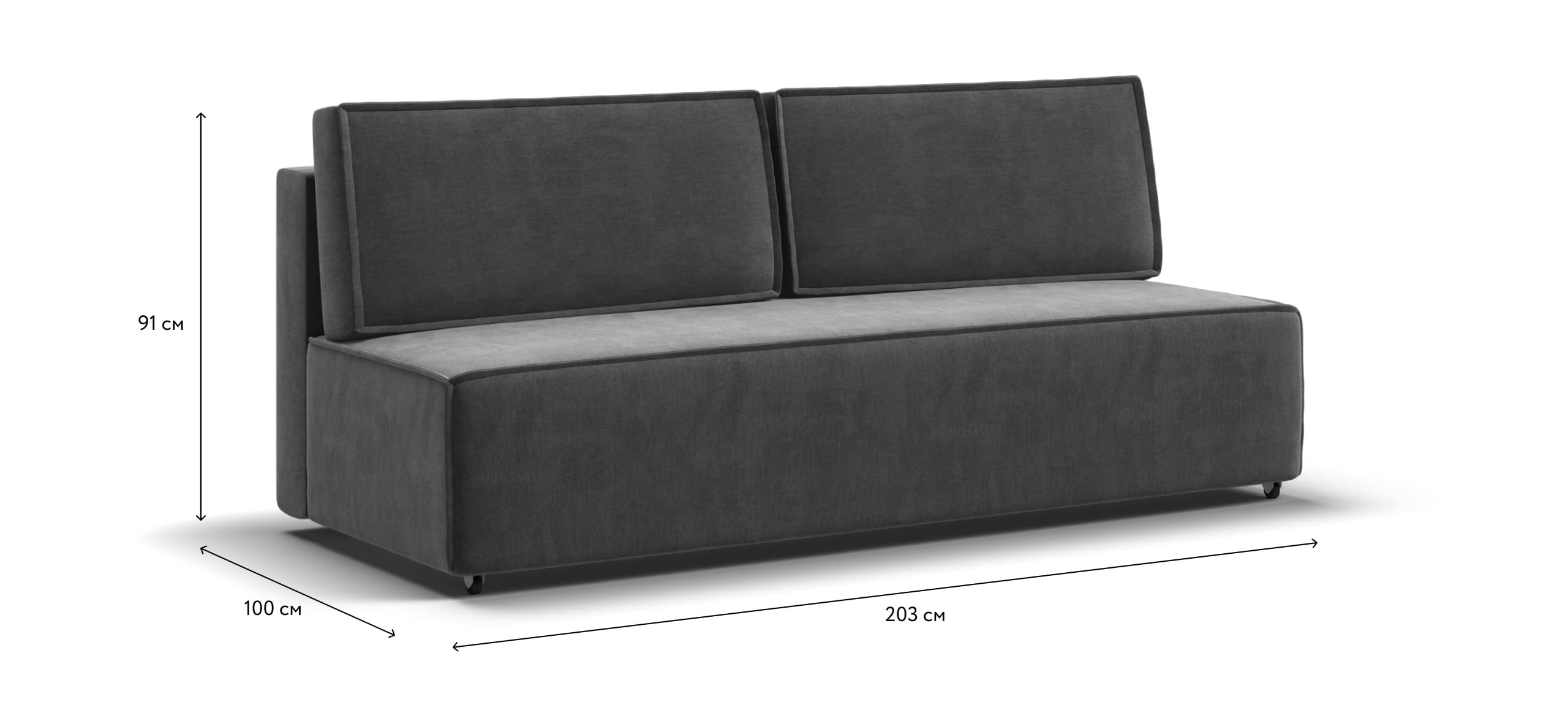 Несмотря на скромные габаритные размеры модель обладает довольно широким спальным местом — 150 см, на котором с комфортом могут разместиться 2 человека. При этом днем она будет служить удобным местом для отдыха благодаря наличию мягких набивных подушек, которые поддерживают спину, позволяя расслабиться, например, за просмотром любимого фильма.