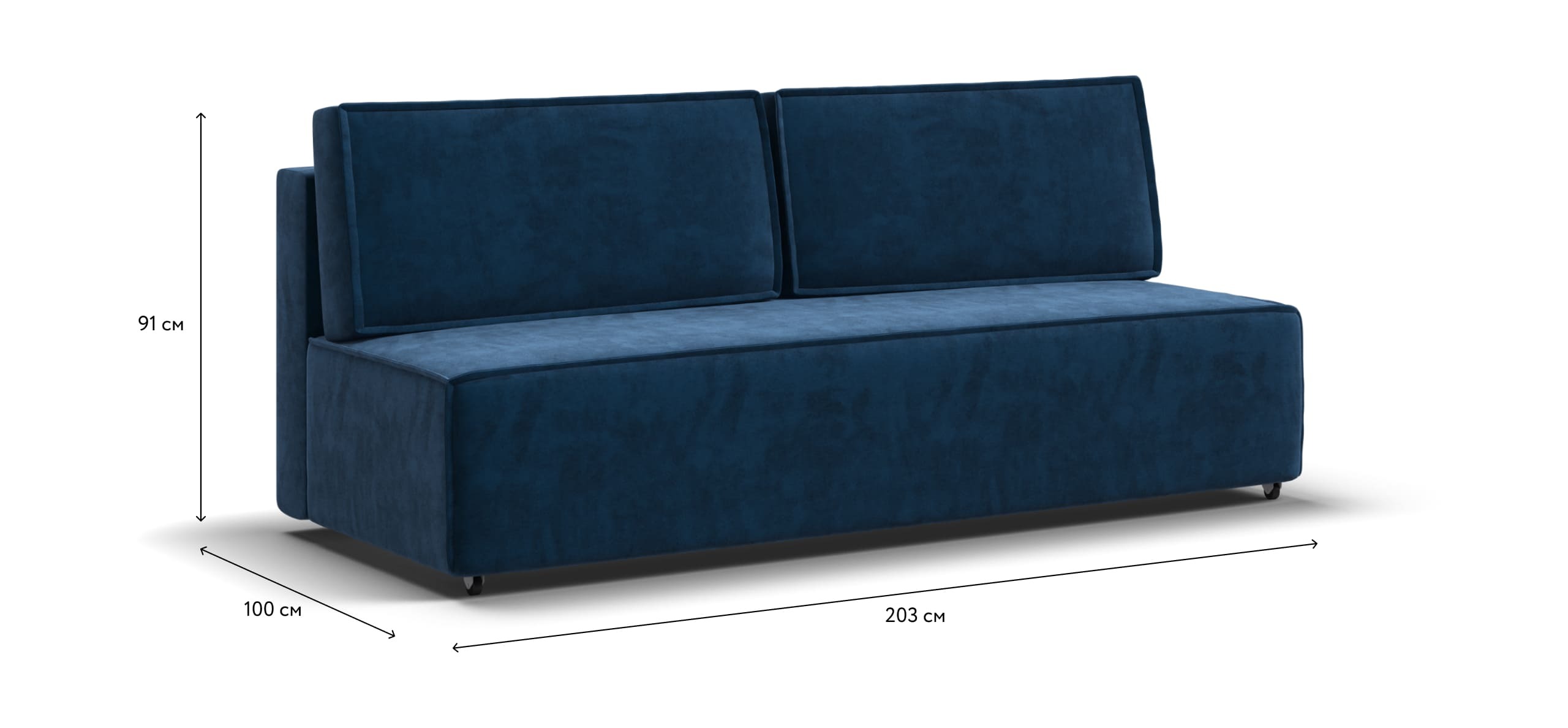 Модель представлена без подлокотников, при этом обладает довольно широким спальным местом, что позволяет с комфортом разместиться двум людям.