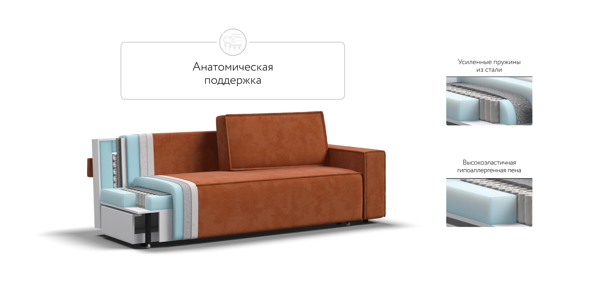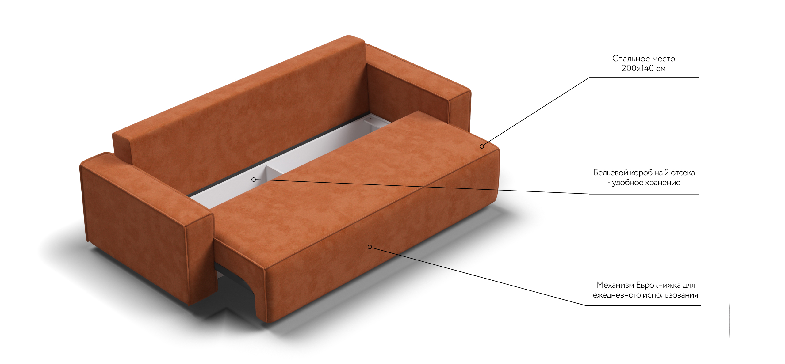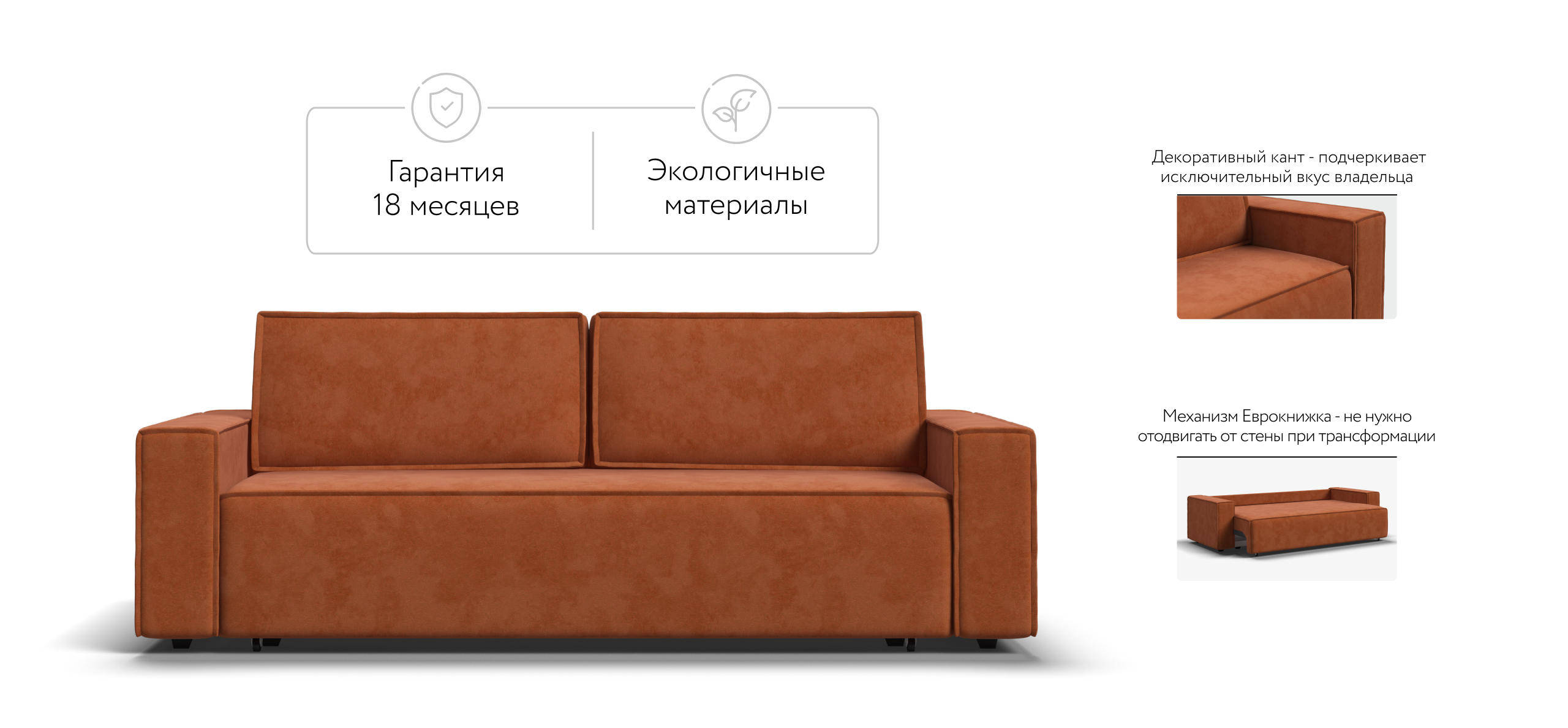 Прямой диван Норд с широкими прямоугольными подлокотниками, строгой симметрией и минималистичной отделкой идеально дополнит современный интерьер в стиле лофт.Днем вы с комфортом сможете провести время за просмотром любимого фильма, а ночью трансформировать диван в идеально ровное спальное место без стыков, благодаря анатомическому матрасу и надежному механизму еврокнижка.