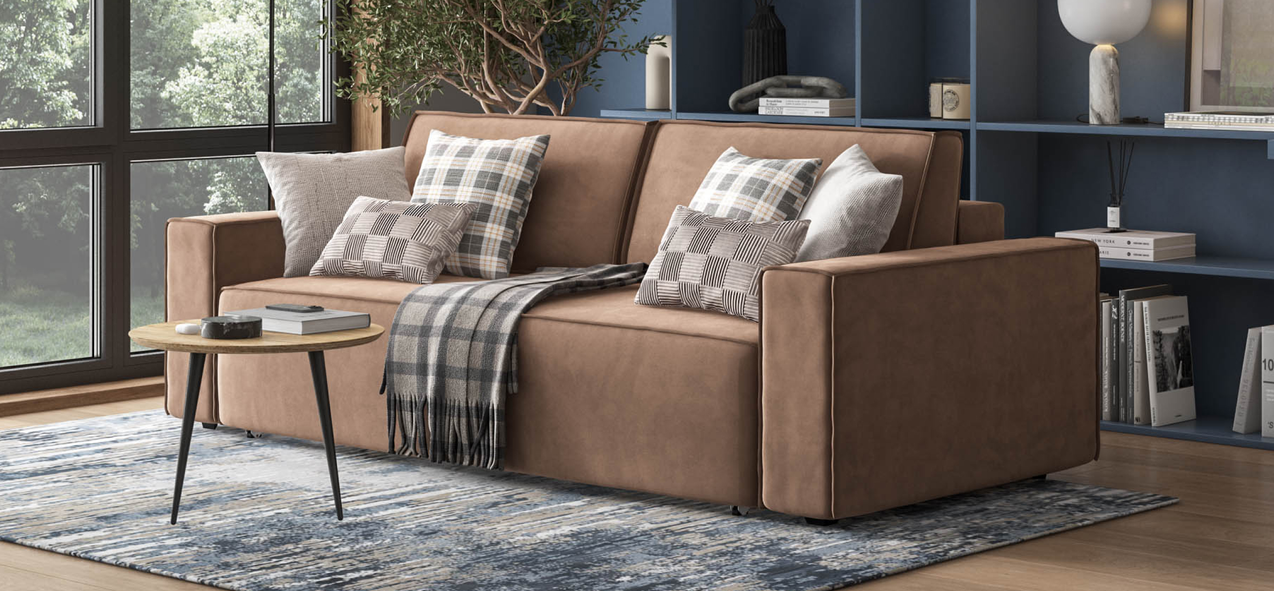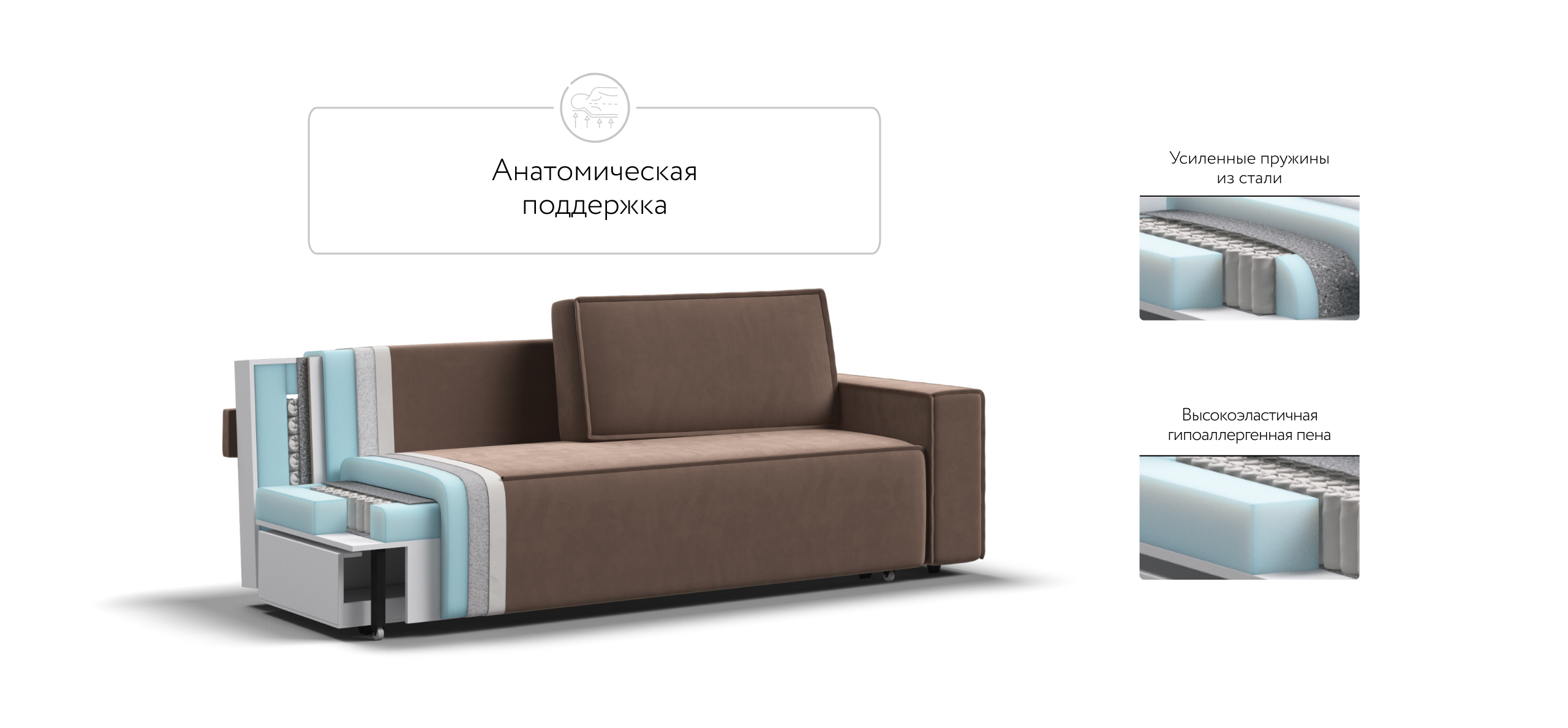 Прямой Диван Норд с широкими прямоугольными подлокотниками, строгой симметрией и минималистичной отделкой идеально дополнит современный интерьер в стиле лофт.Днем вы с комфортом сможете провести время за просмотром любимого фильма, а ночью трансформировать диван в идеально ровное спальное место без стыков, благодаря анатомическому матрасу и надежному механизму еврокнижка.