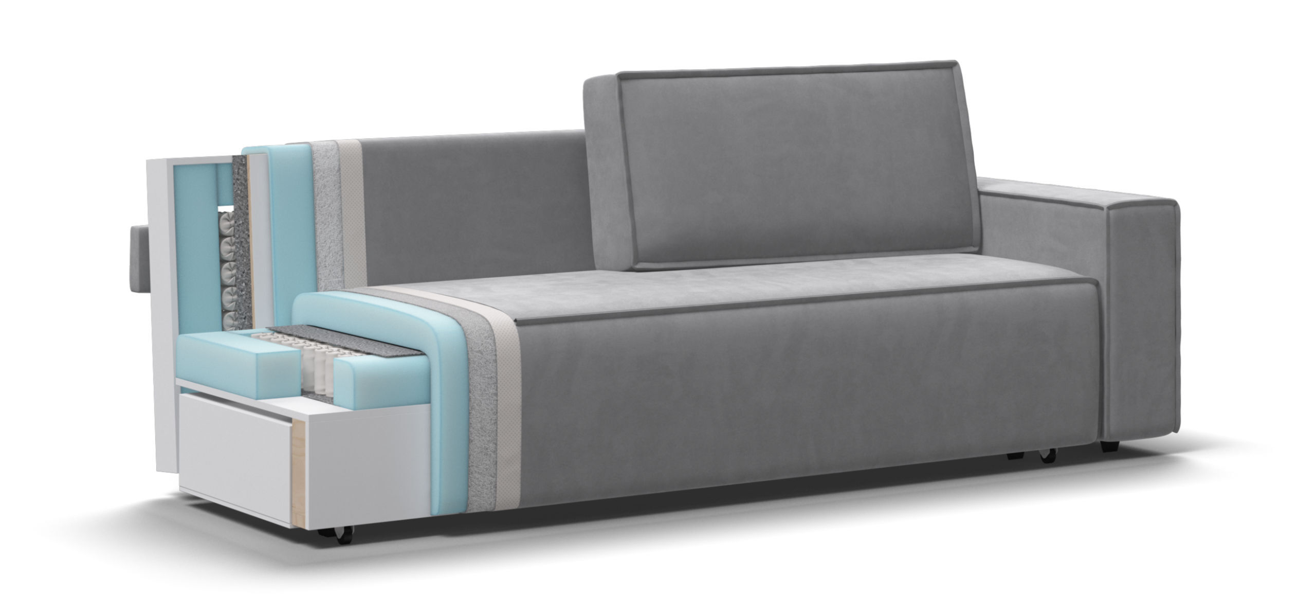 Днем вы с комфортом сможете провести время за просмотром любимого фильма, а ночью трансформировать диван в идеально ровное спальное место без стыков, благодаря анатомическому матрасу и надежному механизму еврокнижка.