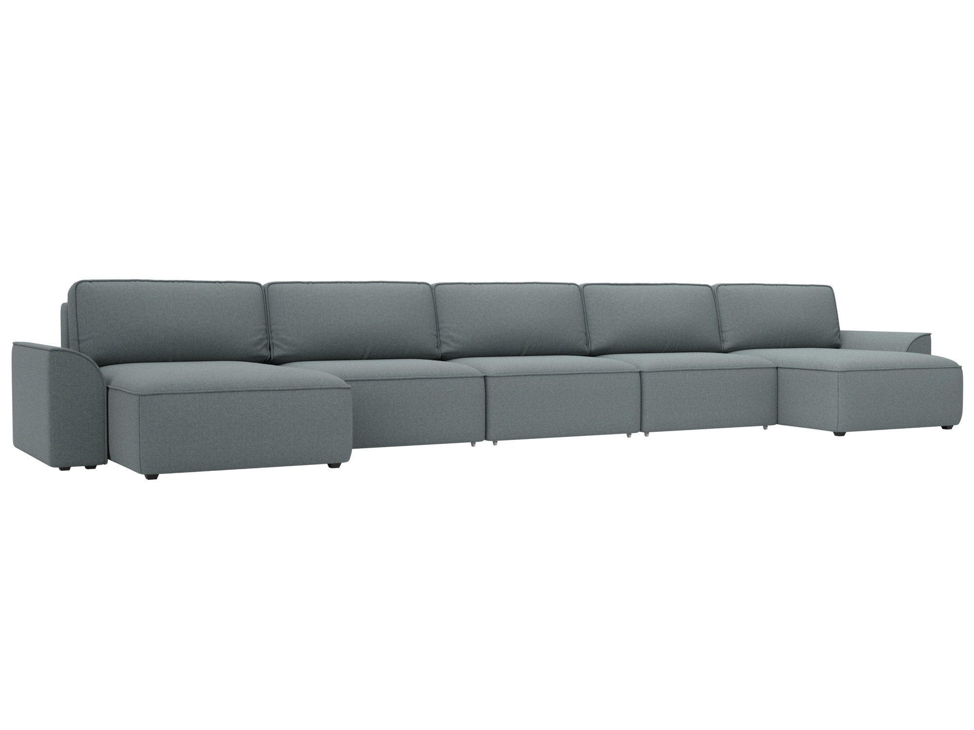 Благодаря **механизму трансформации "Еврокнижка"**, диван легко превращается в просторное спальное место размером 1440х2400 мм. **Каркас из бруса, ЛДСП и фанеры** гарантирует надежность и долговечность конструкции. **Бельевой ящик** позволит удобно хранить постельные принадлежности и другие вещи. Размеры дивана (ШхВхГ): 5300 мм х 900 мм х 1600 мм.
