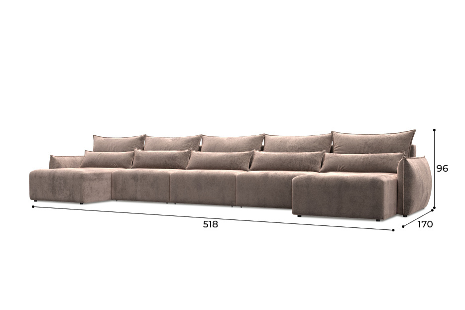 При габаритах: 420x96x170 см подойдет для просторных комнат для большой семьи или вечеров в компании, легко раскладывается, обеспечивая 2 спальных места размером 144x240 см каждое.