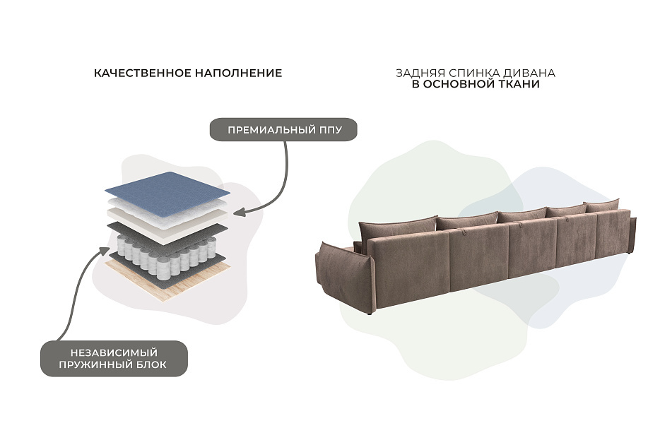Пенополиуретан обеспечивает плавность и удобство форм, комфорт во время эксплуатации. Верхняя мебельная ткань имеет эффектный внешний вид и отличается простотой в уходе. - Большой размер
