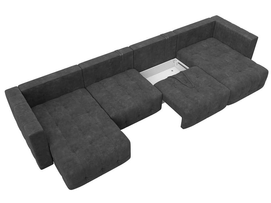 П-образный диван Лига-052 НПБ Лонг – современный диван с лаконичным дизайном и невероятной функциональностью. В считанные секунды, он трансформируется в широкую кровать. Изделие оснащено мягкими подлокотниками и съемными подушками, дополнено вместительными ящиками для белья. Комфортабельность отдыха гарантирована.