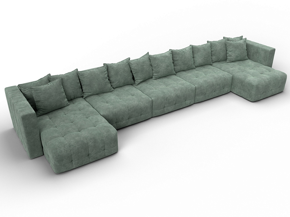 Диван П-образный Лига-052 НПБ МегаЛонг, BRUT 08 ВЕЛЮР зеленый