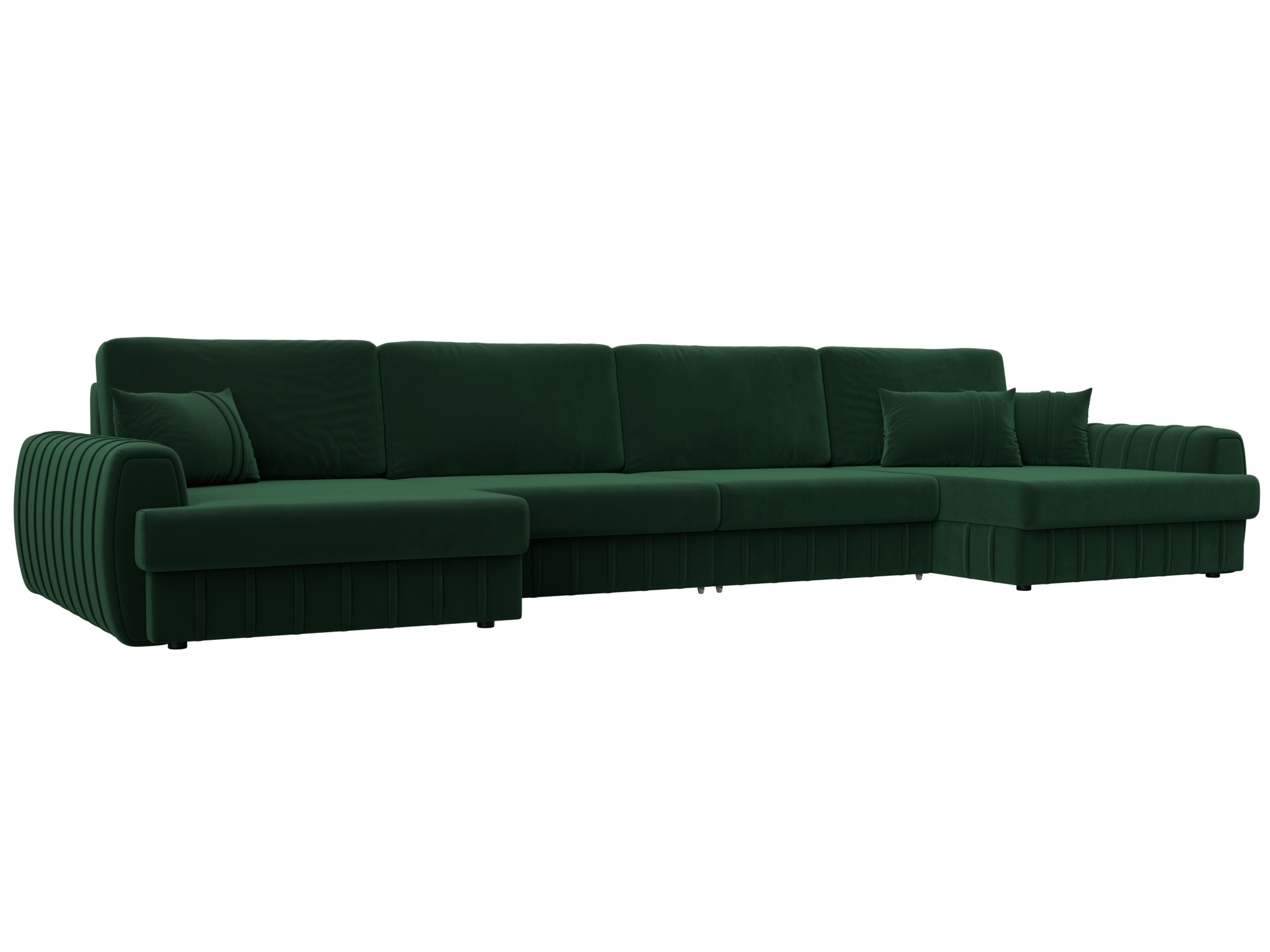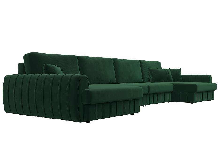 Представляем вашему вниманию роскошный угловой диван, который станет сердцем вашей гостиной! Этот диван не просто мебель, это оазис комфорта и стиля, где каждая деталь продумана для вашего максимального удобства. **Размеры 4330 мм х 920 мм х 1620 мм** позволяют разместить его даже в просторной комнате, а глубокий зеленый **велюр** обивки придает интерьеру изысканность и благородство.