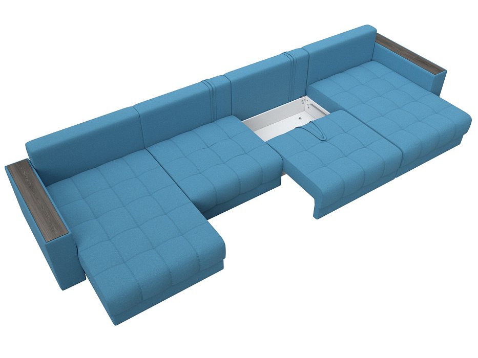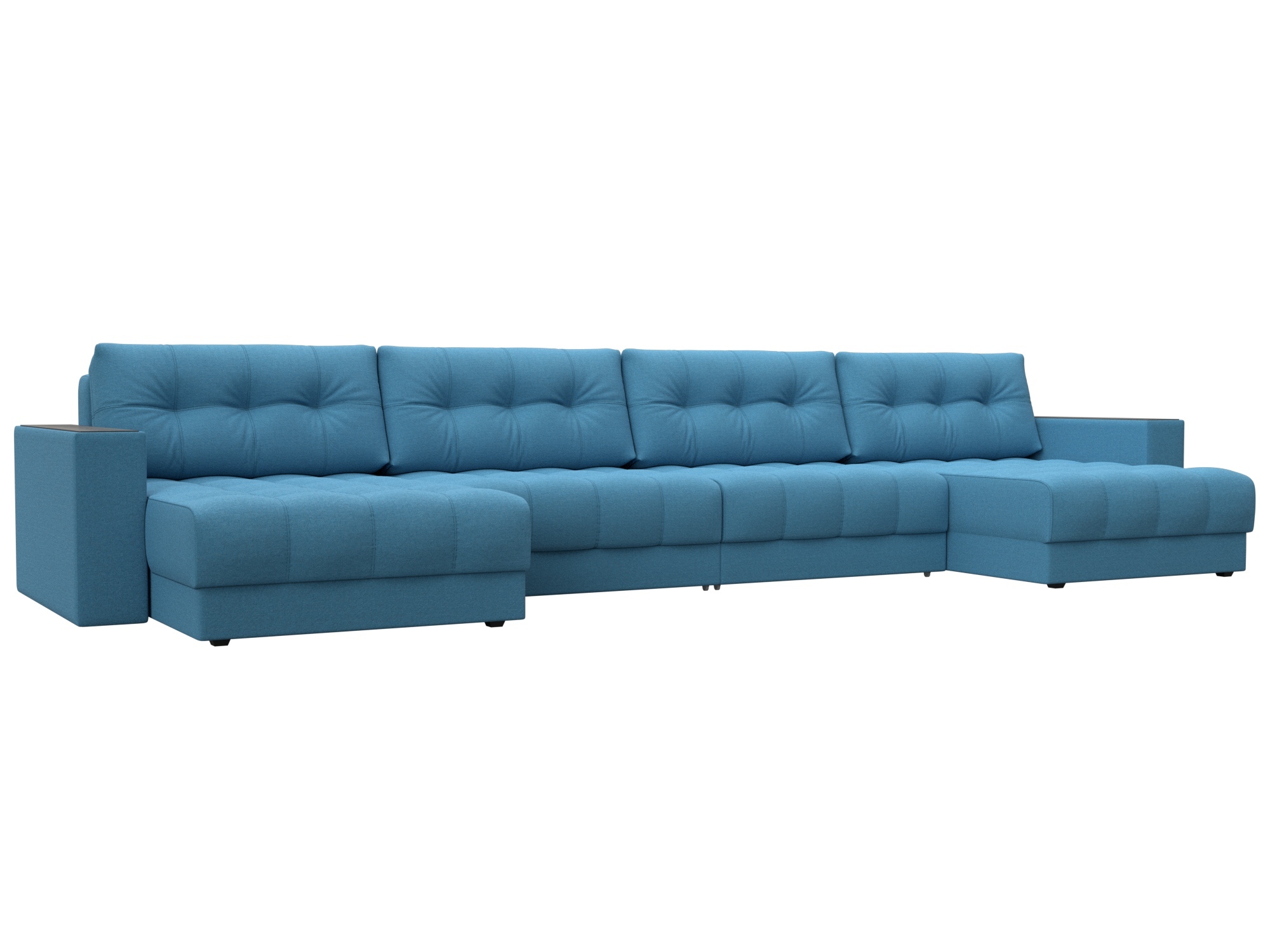 Диван П-образный с декором Лига-049 НПБ Лонг, Амур 10 РОГОЖКА голубой – купить за 171 900 ₽ | Альфамебель