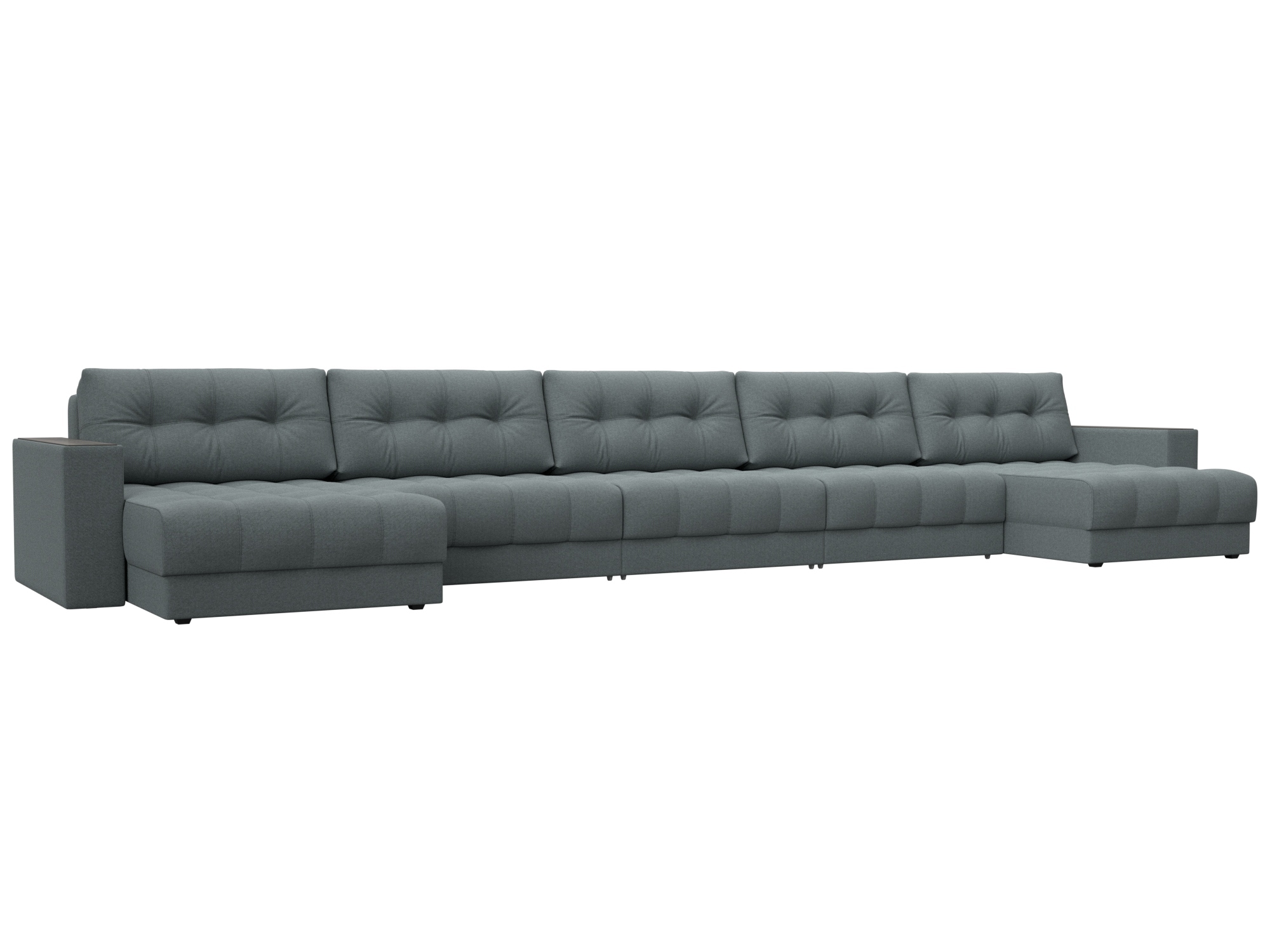Диван П-образный с декором Лига-049 НПБ Мегалонг, Амур 07 РОГОЖКА серый – купить за 212 300 ₽ | Альфамебель