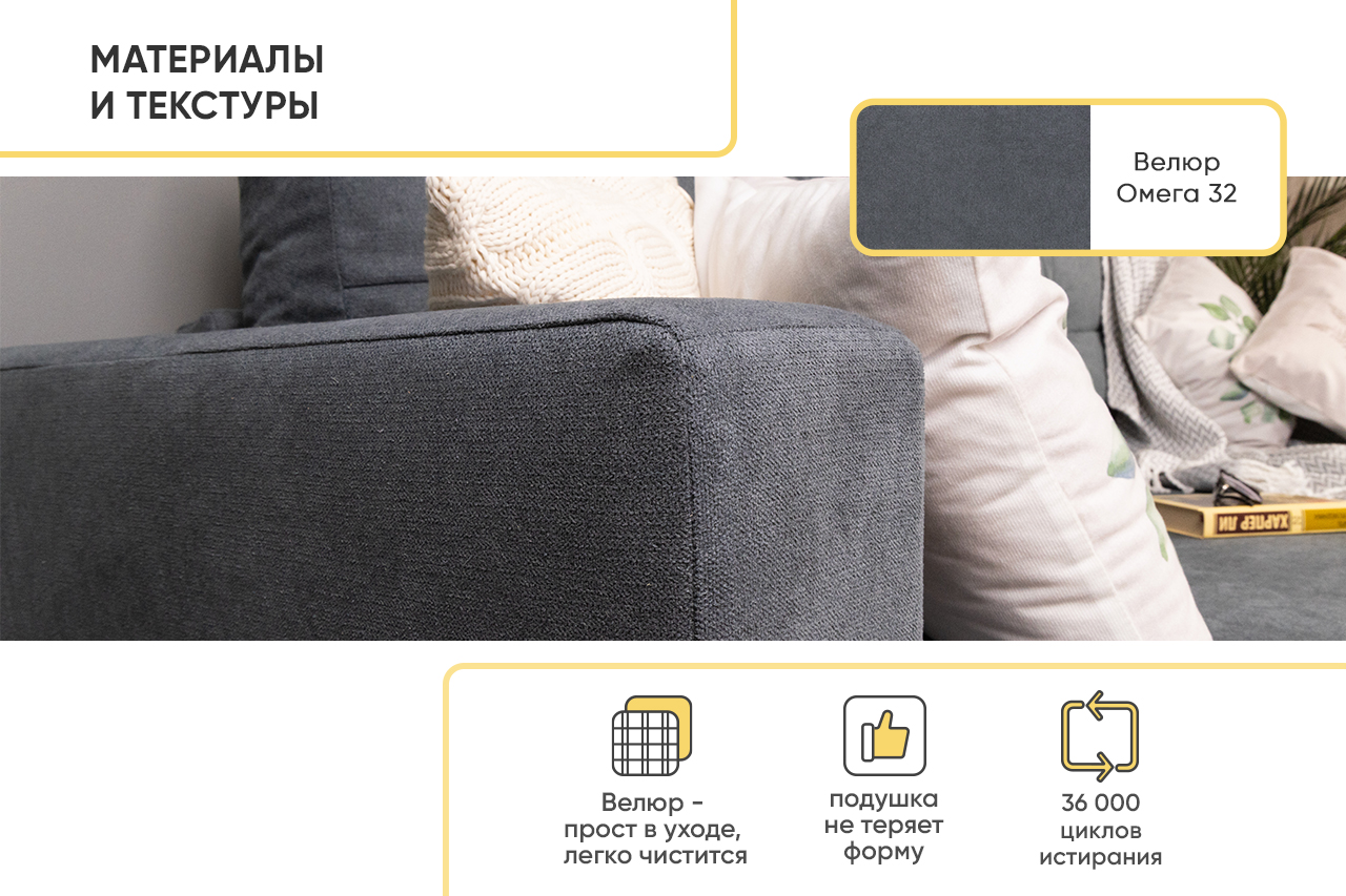 - Обивка - текстура с эффектом мелкого плетения — нежный наощупь и в то же время прочный велюр, без пальчикового эффекта.