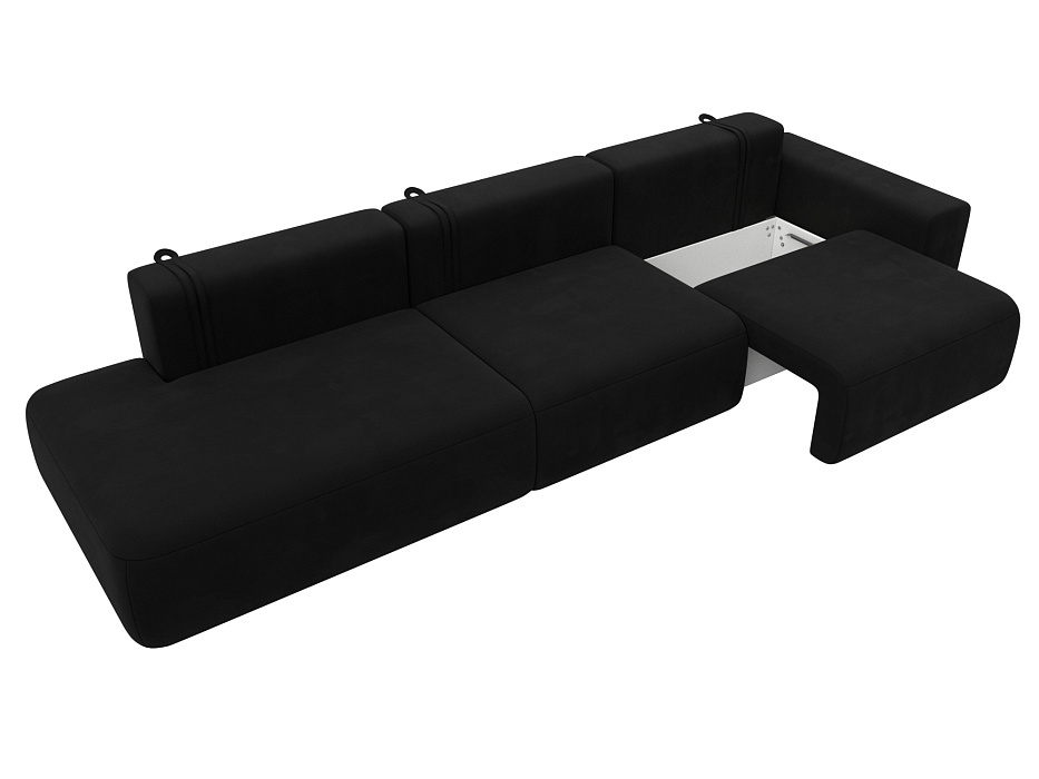 Диван прямой Лига-036 НПБ Модерн Лонг подлокотник справа МИКРОВЕЛЬВЕТ Черный