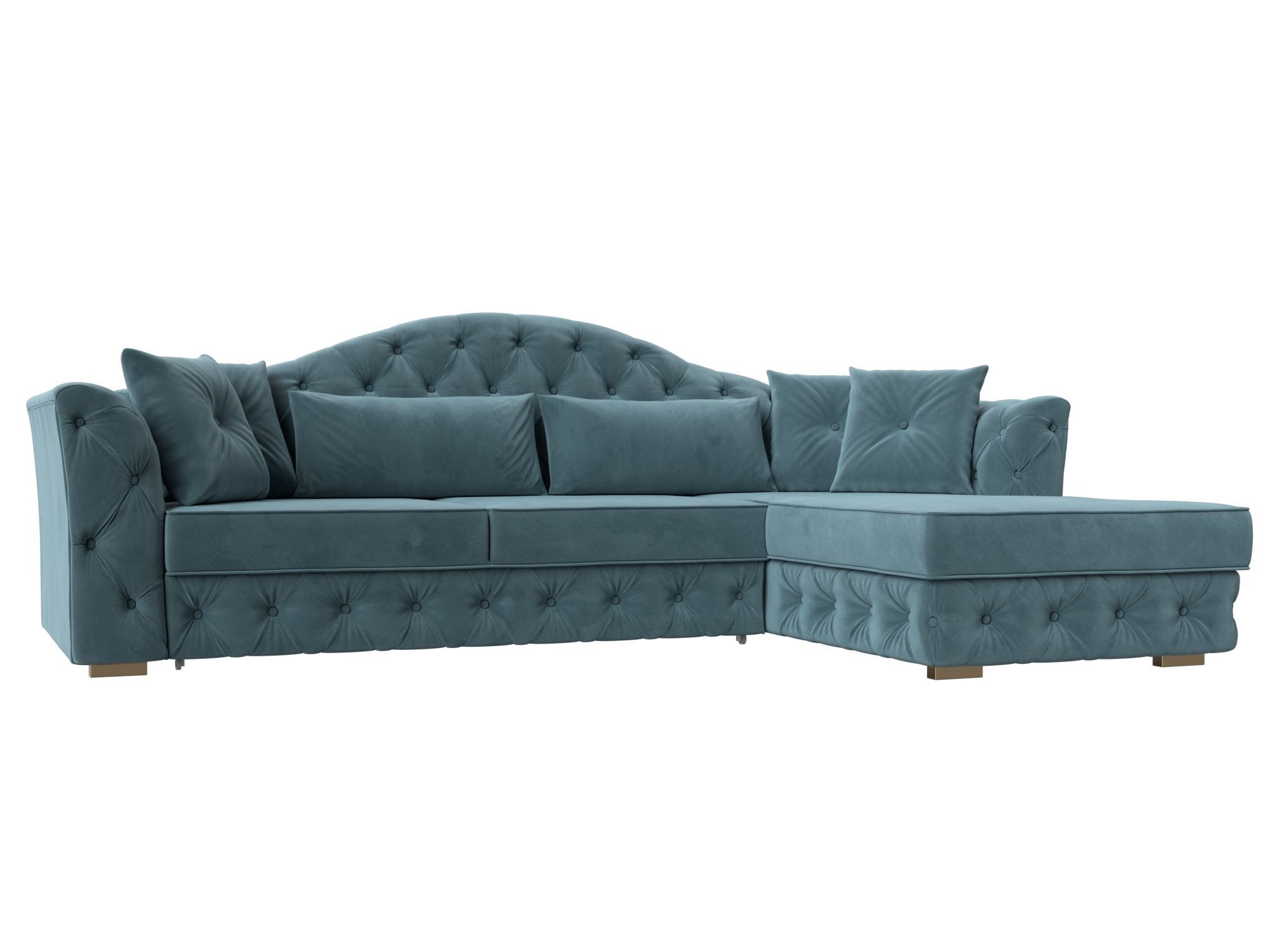 Изысканный угловой диван, обитый мягким велюром, станет сердцем вашей гостиной. Его элегантный дизайн с размерами 2500 мм х 970 мм х 1810 мм идеально впишется в пространство, а глубокий бирюзовый оттенок ткани добавит нотку роскоши и уюта. Наполнитель из резинотканевых ремней и ППУ гарантирует исключительный комфорт и долговечность, позволяя вам наслаждаться отдыхом в полной мере.