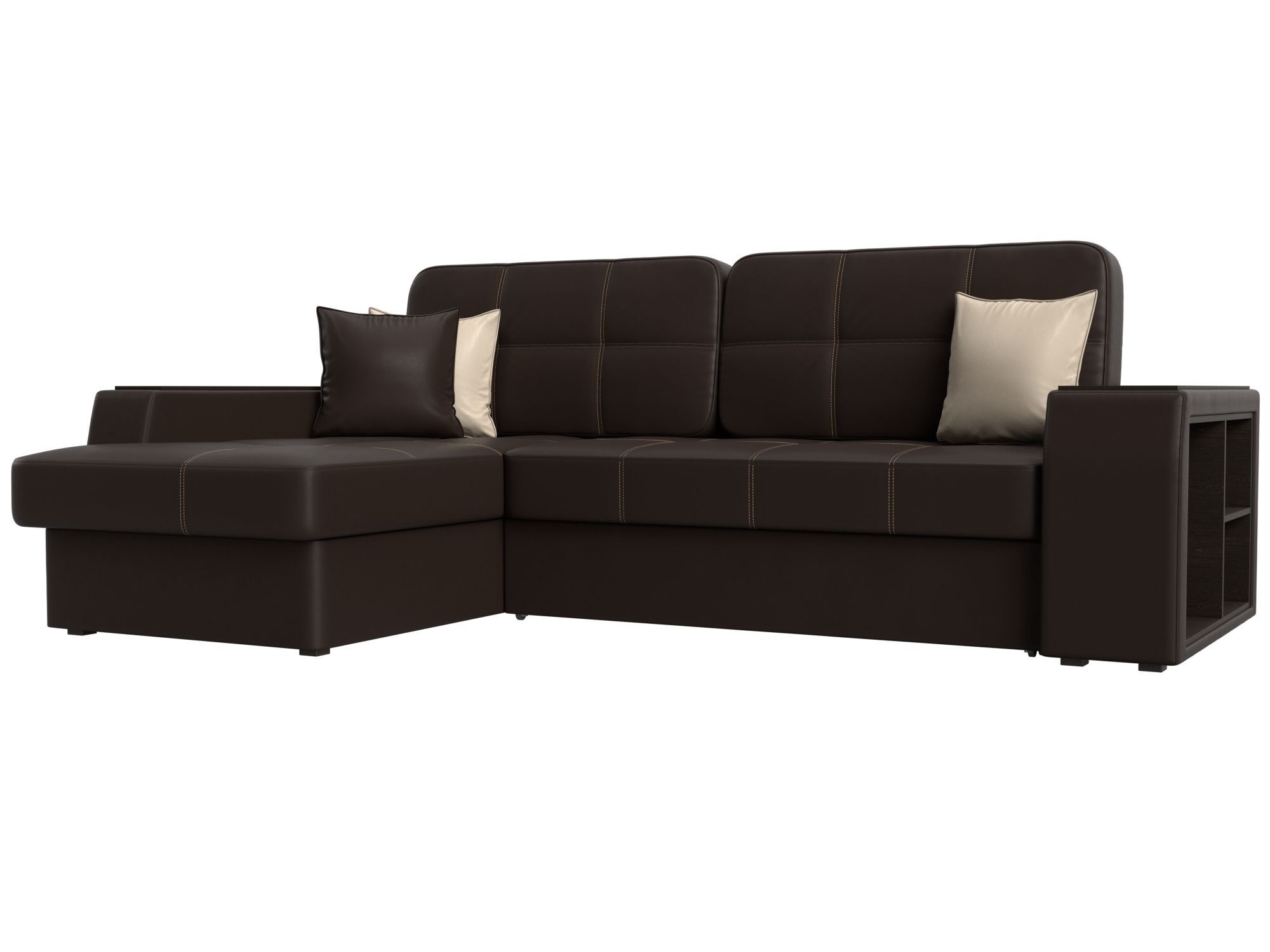 Этот стильный угловой диван станет идеальным дополнением вашей гостиной, сочетая в себе элегантный дизайн и функциональность. Обивка из высококачественной экокожи не только приятна на ощупь, но и проста в уходе, обеспечивая долговечность и безупречный внешний вид. **Размеры дивана 2600х950х1750 мм** позволяют комфортно разместиться всей семье, а механизм трансформации **"Дельфин"** легко превращает его в просторное спальное место размером **1500х2000 мм**.
