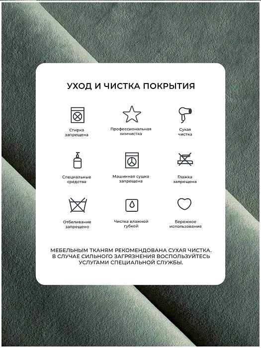 Пенополиуретан обеспечивает плавность и удобство форм, комфорт во время эксплуатации. Верхняя мебельная ткань имеет эффектный внешний вид и отличается простотой в уходе. - Средний размер